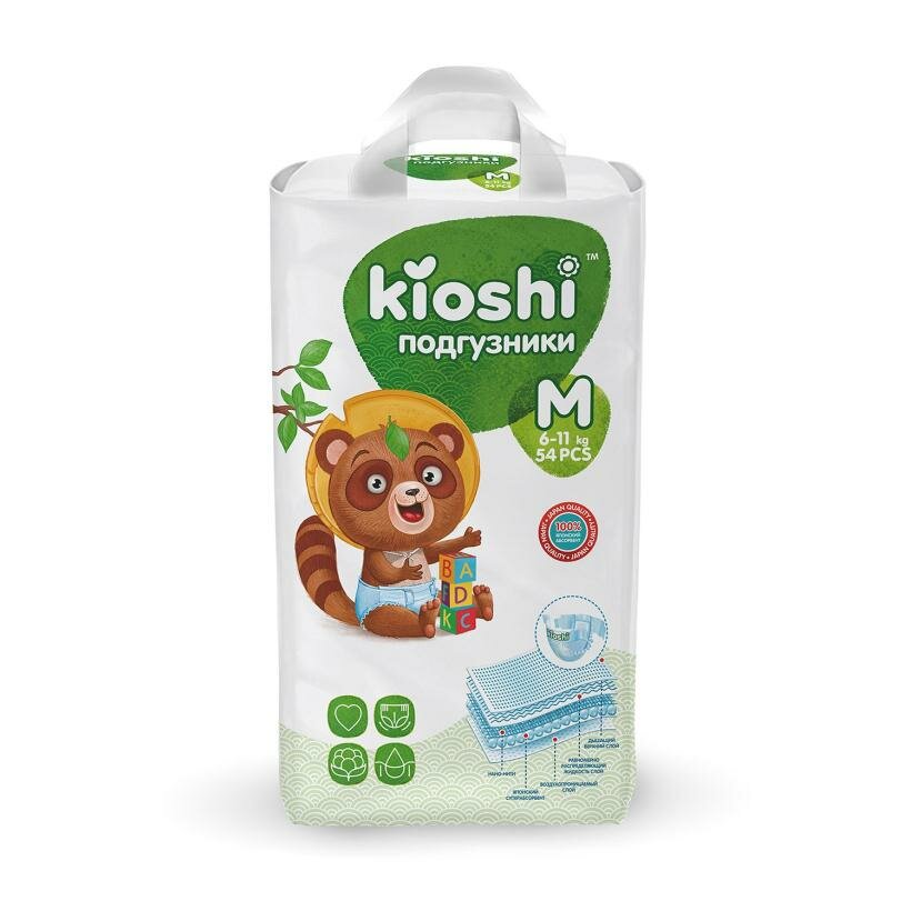 Подгузники детские KIOSHI M 6-11 кг, 54 шт