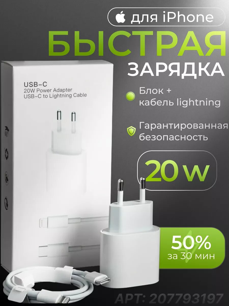 Сетевое зарядное устройство. Зарядка USB-Lightning c кабелем для Apple iPhone, iPad, iPhone, iPod / Адаптер питания и Кабель Lightning - 1 м. интересное: