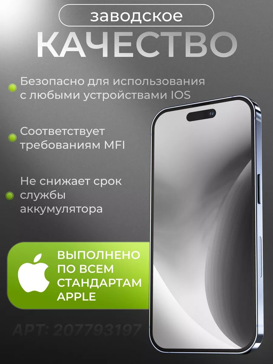 Не качественный хлипкий и долго заряжает и уже через день айфон отверг эту зарядку не советую, лучше потратится за оригинал