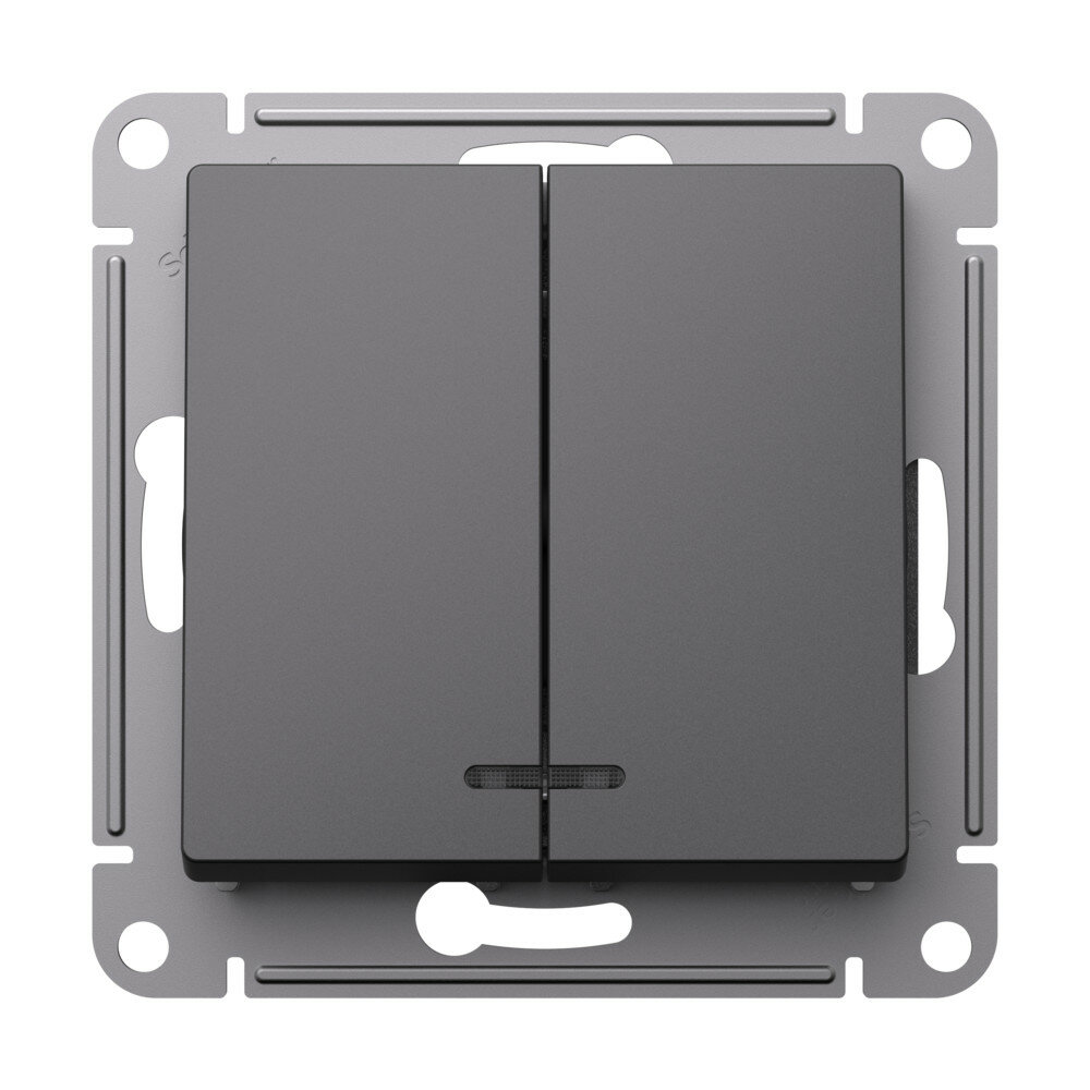 Купить Systeme Electric AtlasDesign Базальт Выключатель 2-клавишный с подсветкой, сх.5а, 10АХ, механизм