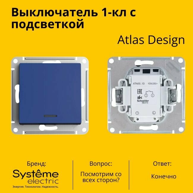 Купить Systeme Electric AtlasDesign Аквамарин Выключатель 1-клавишный с подсветкой, сх.1а, 10АХ, механизм