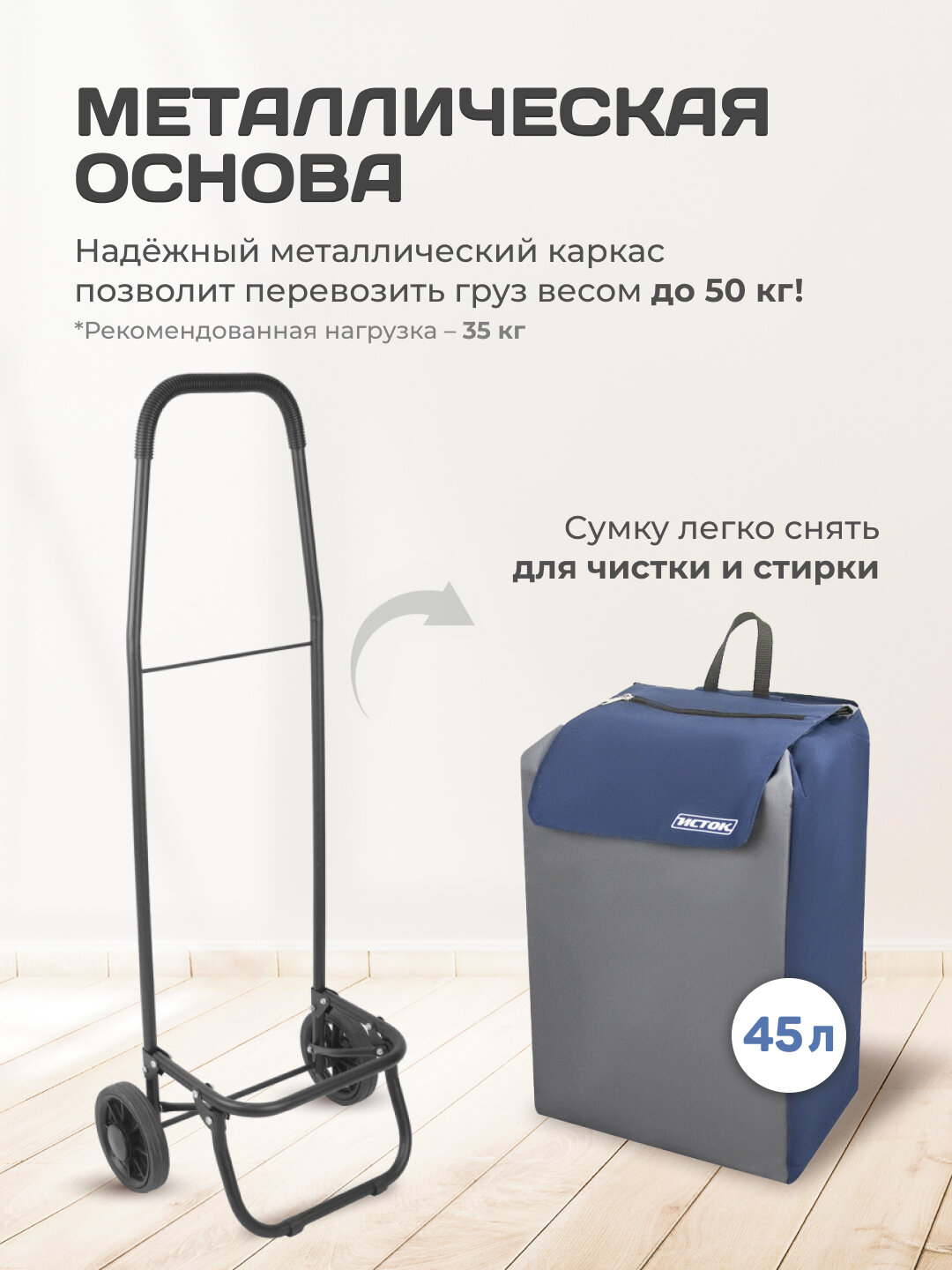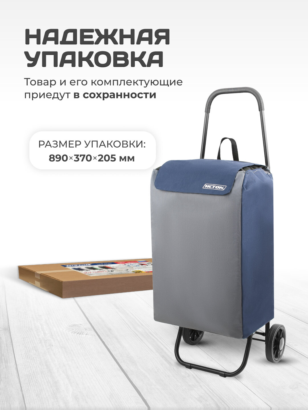 Сумка-тележка Исток, 45 л, 42х98х36 см, серый/синий