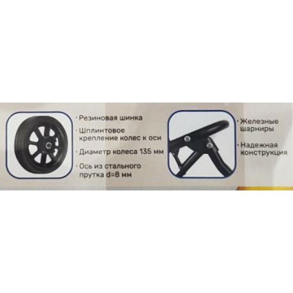 | Отзыв: | Хорошая,качественная тележка. На колесах нет шарико-подшипникового механизма,колеса одеваются пластиковым отверстием прямо на металл.ось. Не перегружайте телегу и она прослужит вам долго. Но если всё таки колеса износятся, можно на Яндекс-Маркет приобрести новую колёсную пару. |