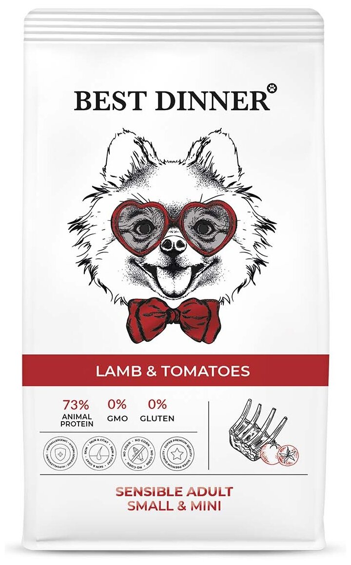 Best Dinner Adult Sensible Mini Lamb & Tomatoes сухой корм для собак мелких пород склонных к аллергии и проблемам с пищеварением с ягненком и томатами - 1,5 кг
