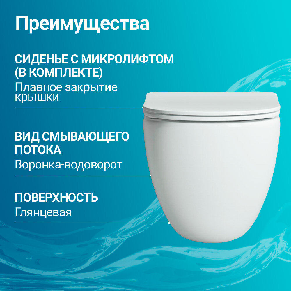 | Особенности | антигрязевое покрытие / безободковый / Быстросъемное сидение / Антивсплеск / Микролифт |