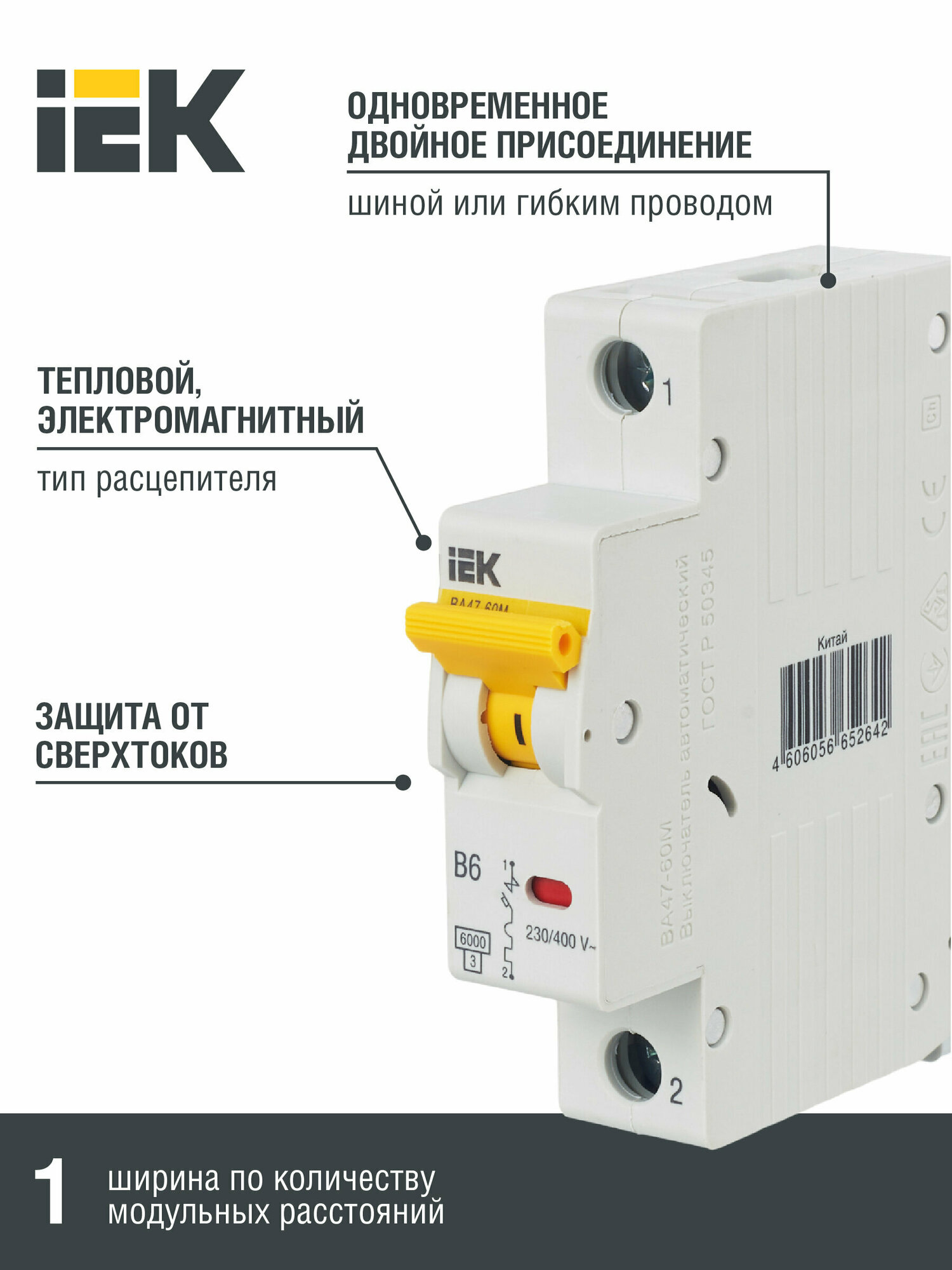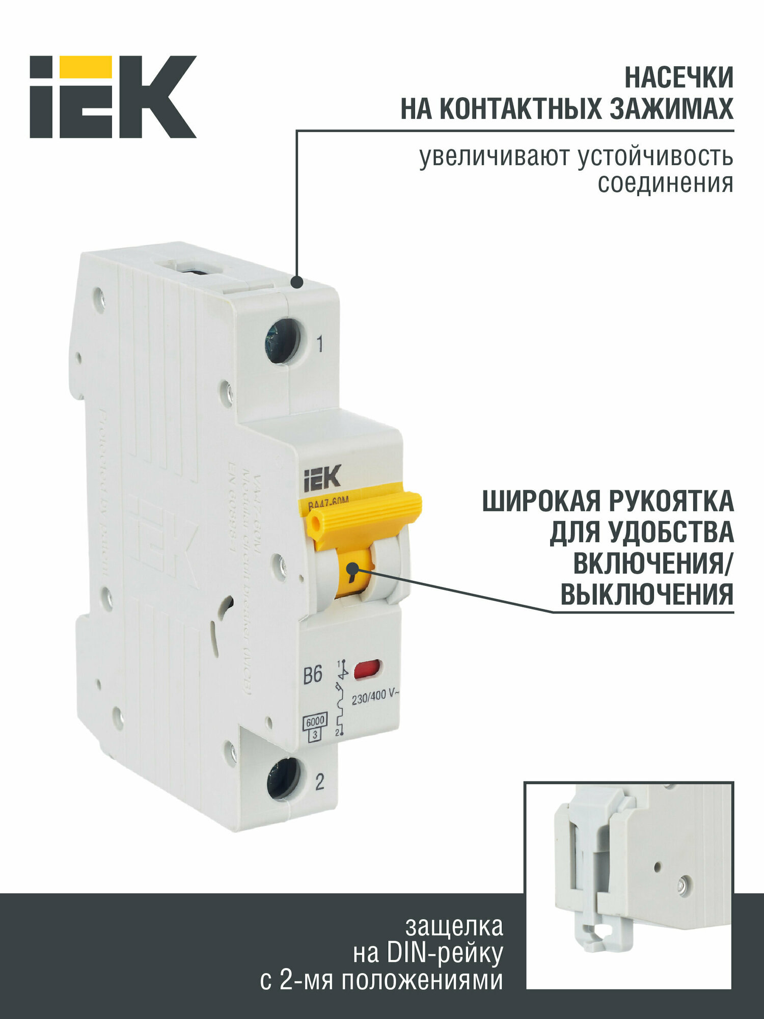 Выключатель автоматический ВА47-60M 1Р 6А 6кА B, IEK MVA31-1-006-B (1 шт.)