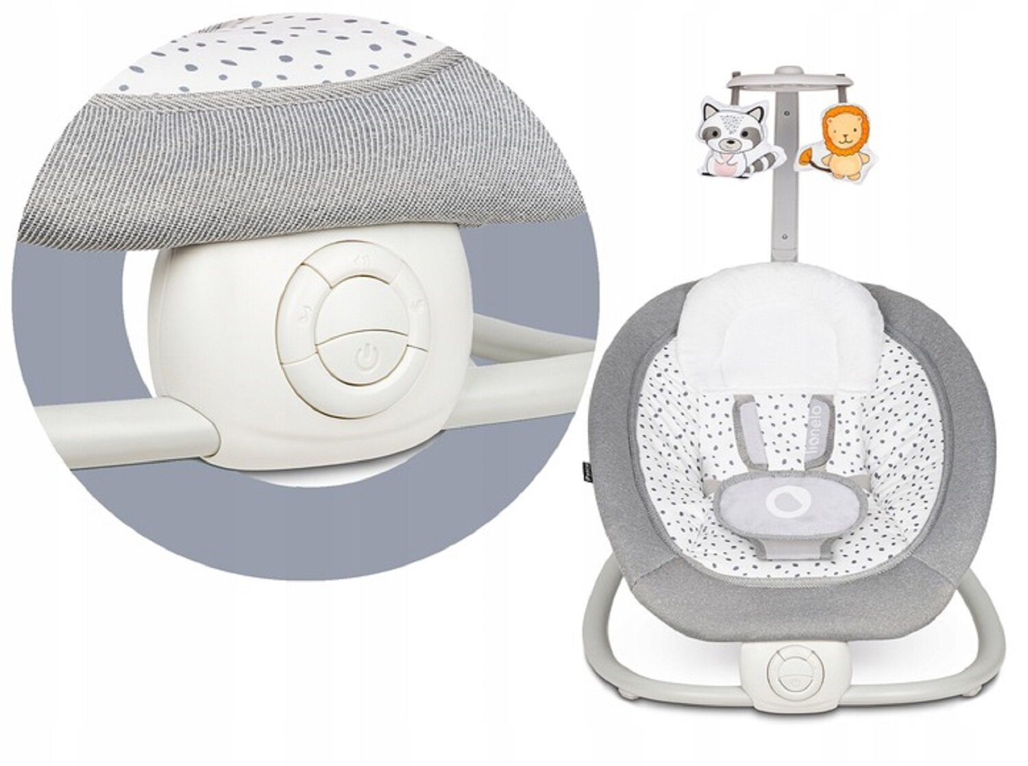 Детский шезлонг качалка для новорожденных Lionelo Pascal Grey Dove