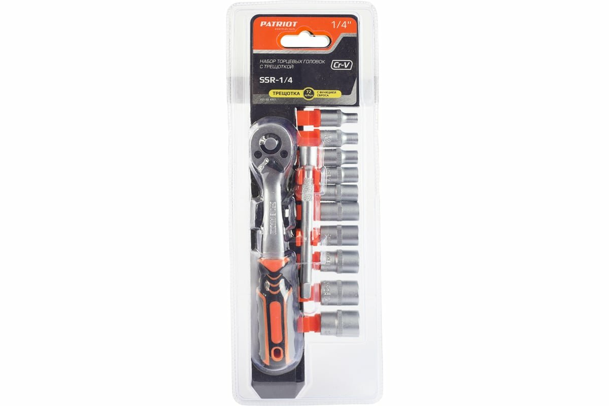 Набор торцевых головок Patriot SSR-1/4, трещотка, удлинитель, 12 предметов