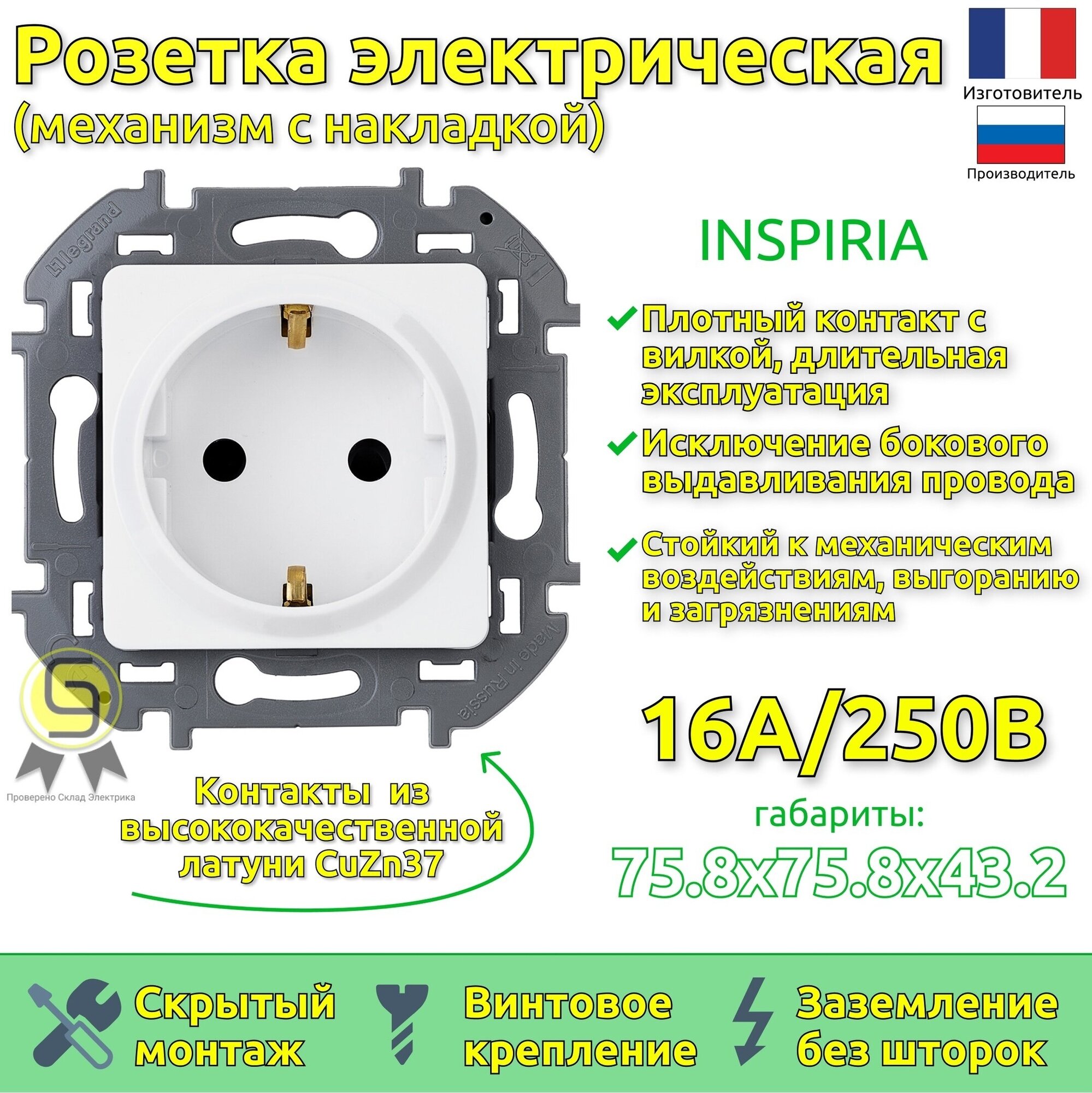 СохранитьРозетка с заземлением одинарная Legrand INSPIRIA скрытой установки 16А белый Легран 673720 интересное: