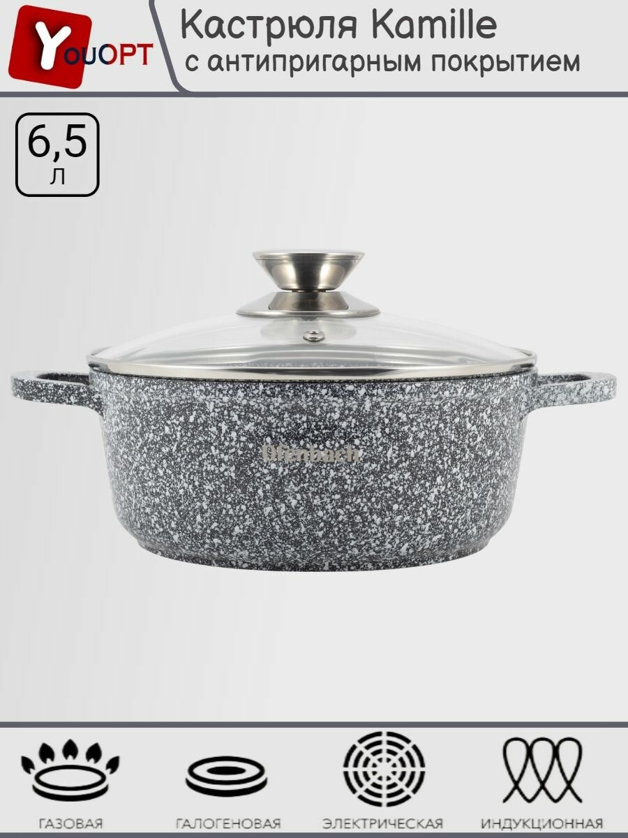Кастрюля 6,5 л. из литого алюминия Ofenbach NB-100502 (28х12,5 см) с антипригарным покрытием серый мрамор (6,5 л. / серый)