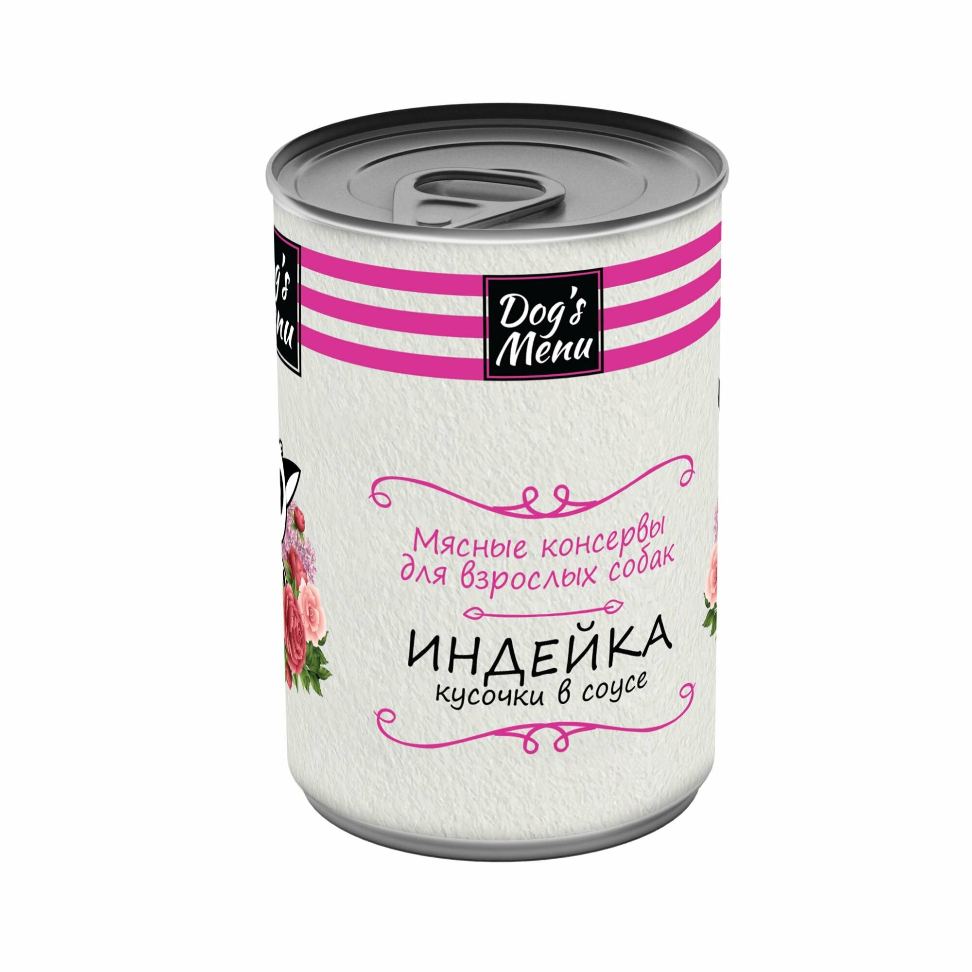 Консервы Догс Меню для взрослых собак с Индейкой кусочки в соусе (цена за упаковку) 340г х 12шт