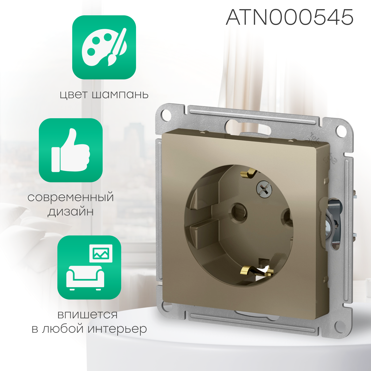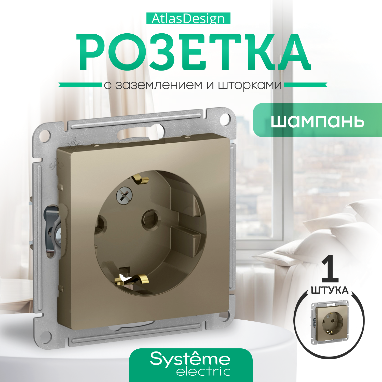 СохранитьРозетка с заземлением со шторками Systeme Electric ATLASDESIGN шампань интересное: