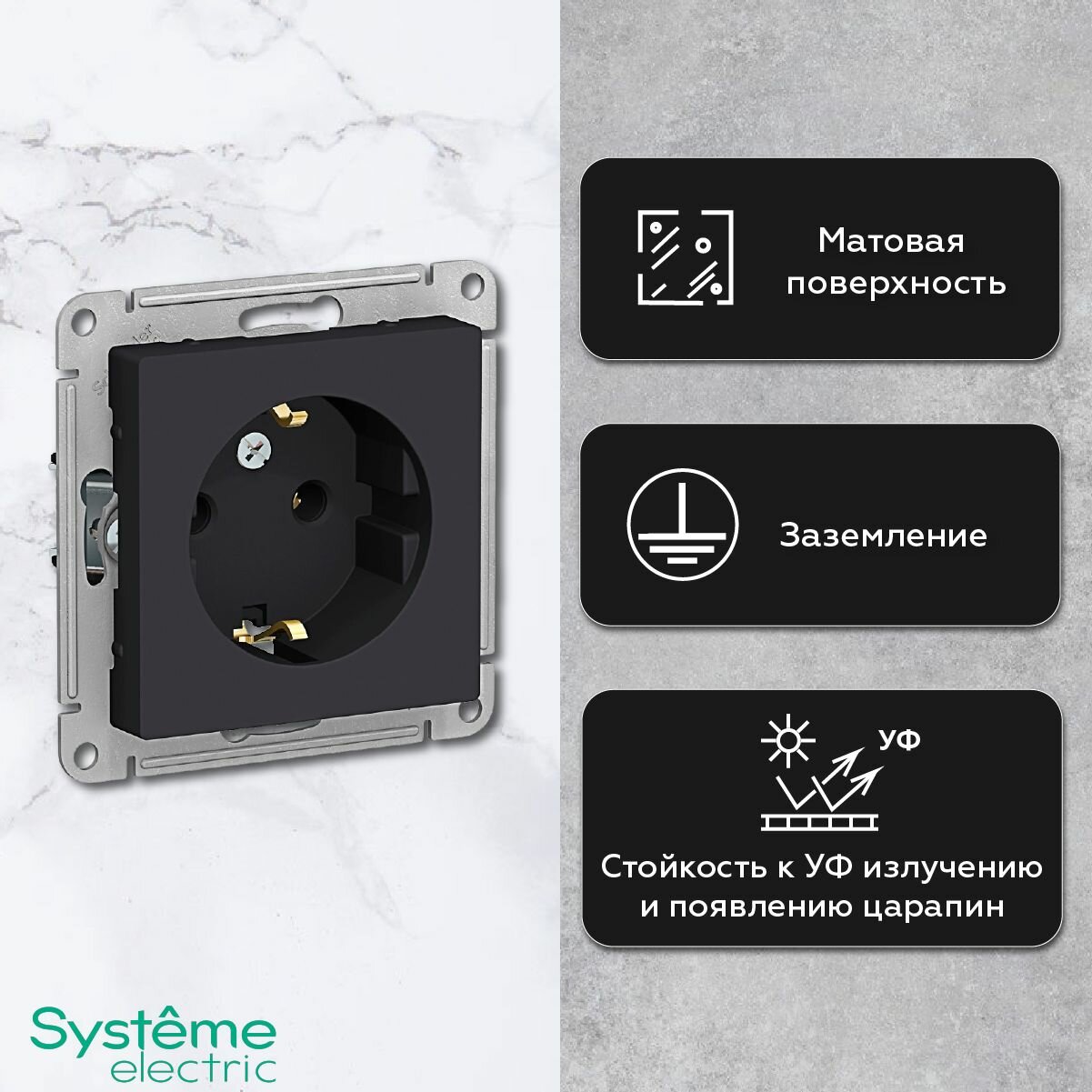 Розетка ATLASDESIGN, скрытый монтаж, с заземлением, карбон | код. ATN001043 | Schneider Electric (6шт. в упак.)
