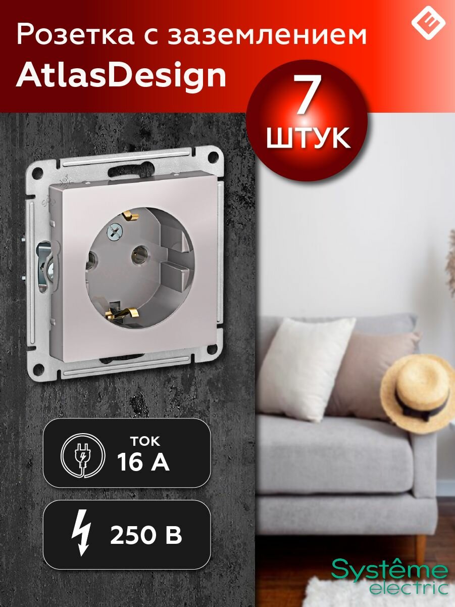 Розетка с заземлением, жемчуг Schneider Electric AtlasDesign (комплект 7шт)