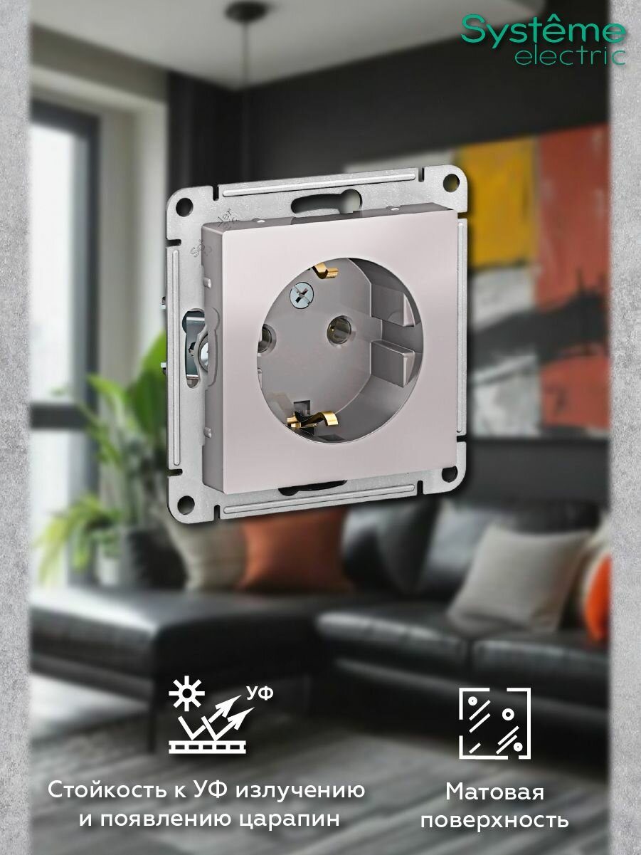 10 шт. Systeme Electric AtlasDesign Шампань, Розетка с заземлением со шторками, 16А, механизм, ATN000545