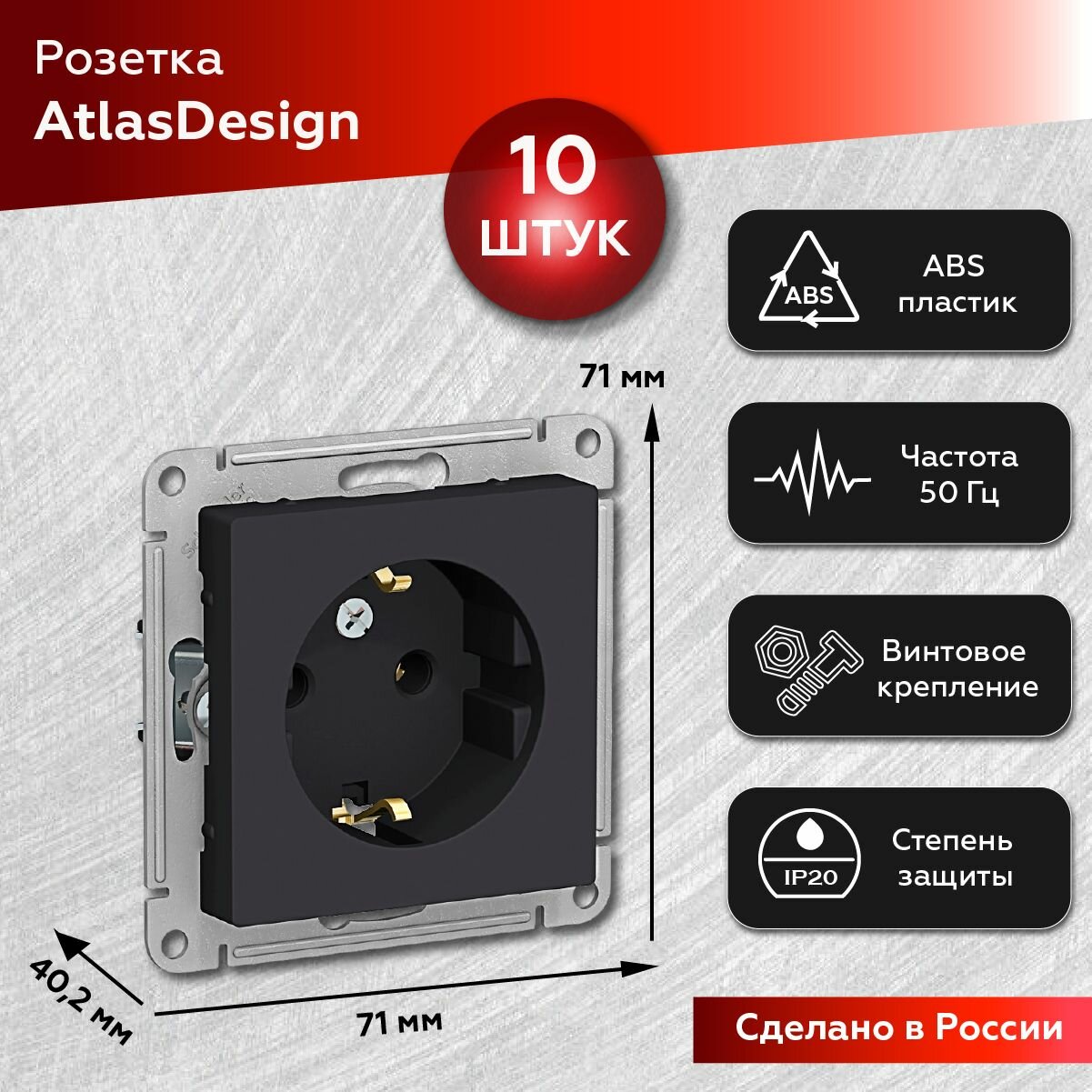 Schneider Electric AtlasDesign Розетка с заземлением, 16А, механизм розетки, цвет Черный (Карбон) ATN001043 10шт
