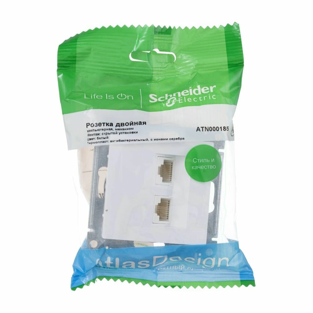Розетка ATLASDESIGN двойная компьютерная RJ45+RJ45 категория 5E механизм белый | код ATN000185 | Schneider Electric (5шт. в упак.)