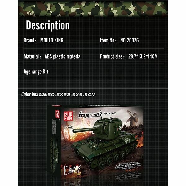 СохранитьКонструктор Mould King 20026 Тяжелый танк KV-2,941деталей интересное:
