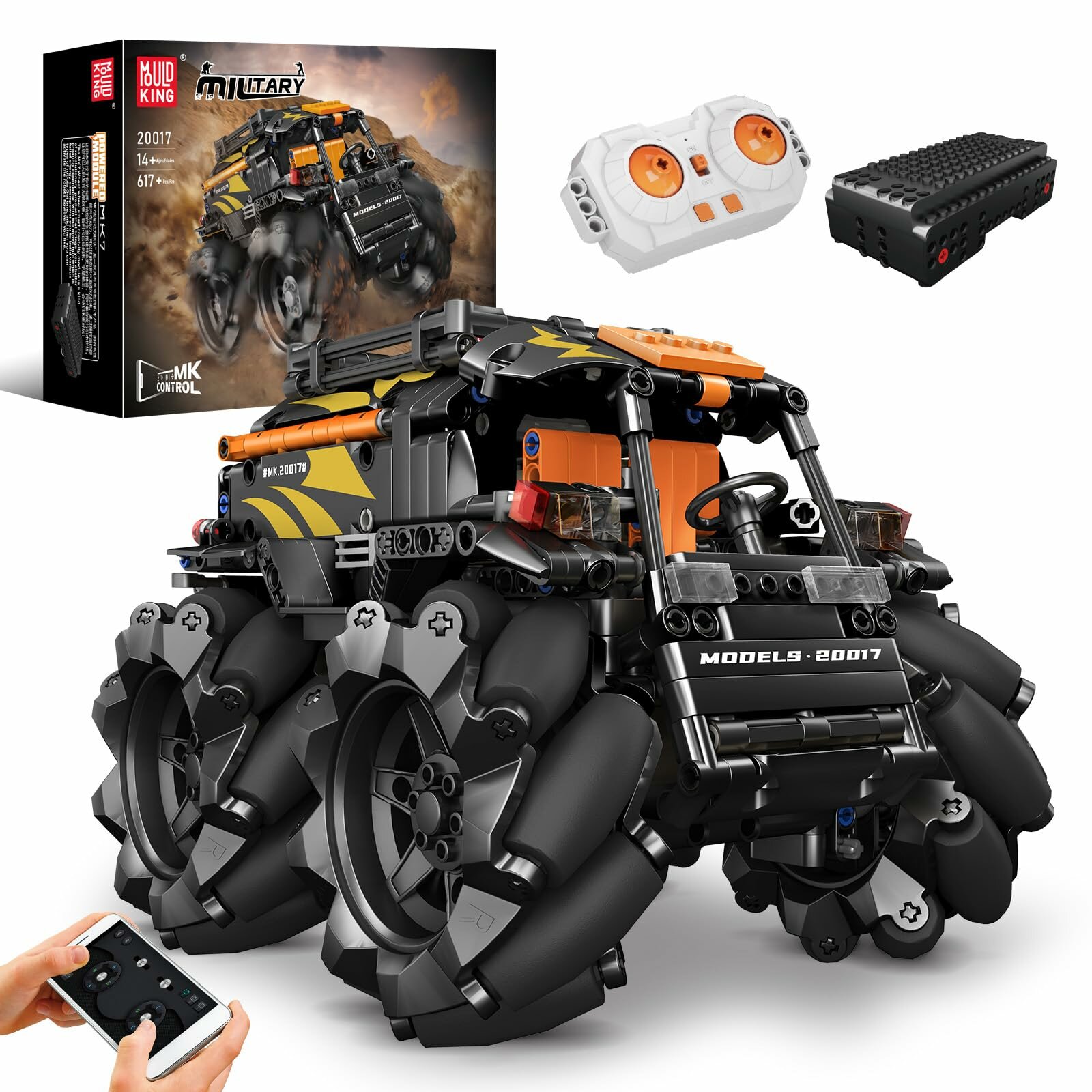 Купить Конструктор Mould King 20017 Вездеход с колесом Илона (оранжевый),617деталей