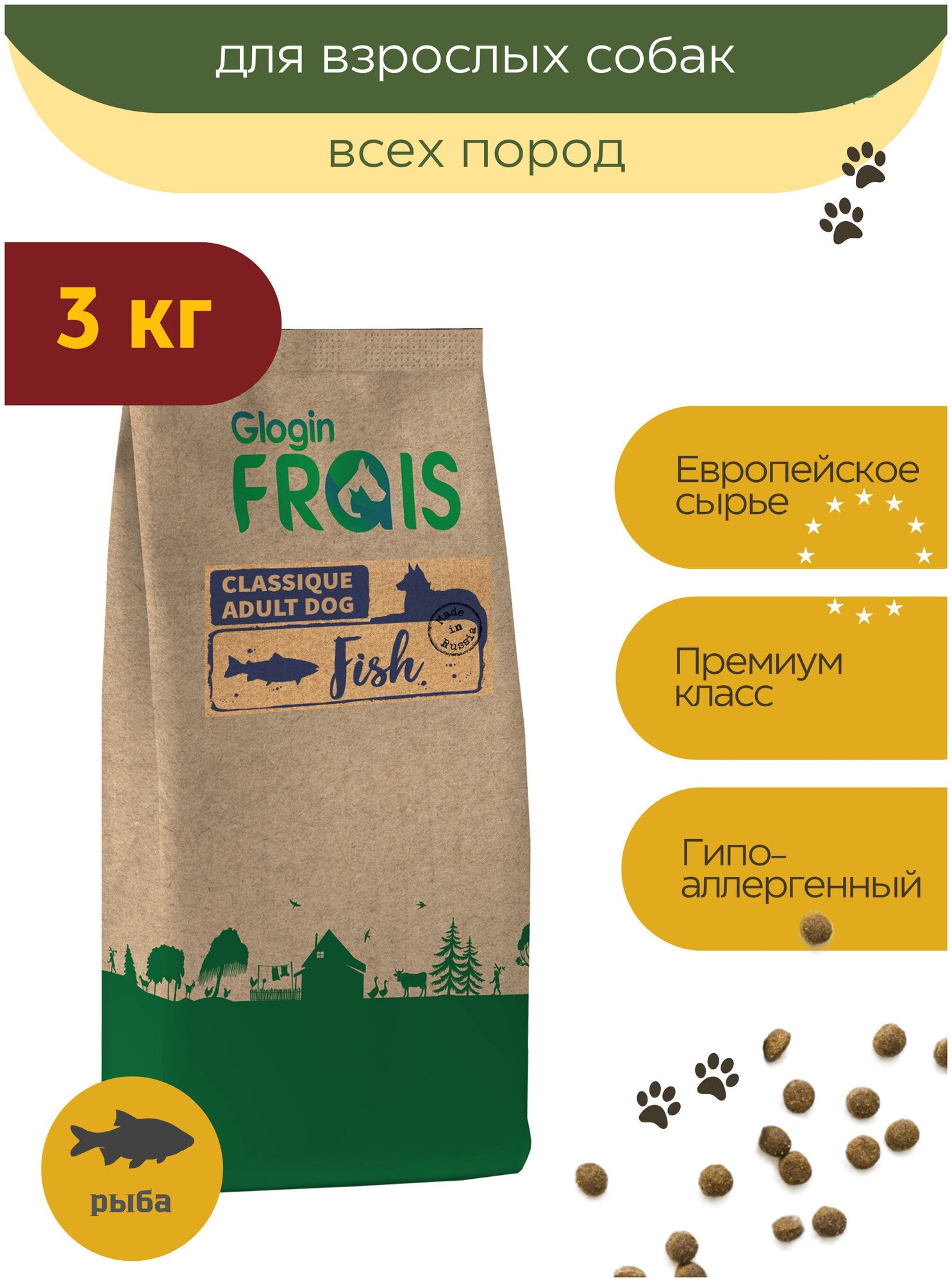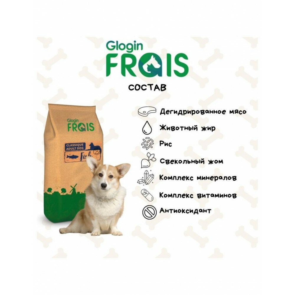 Корм FRAIS 3кг для собак с рыбой, гранула круг 16 мм 20/10 CLASSIQUE