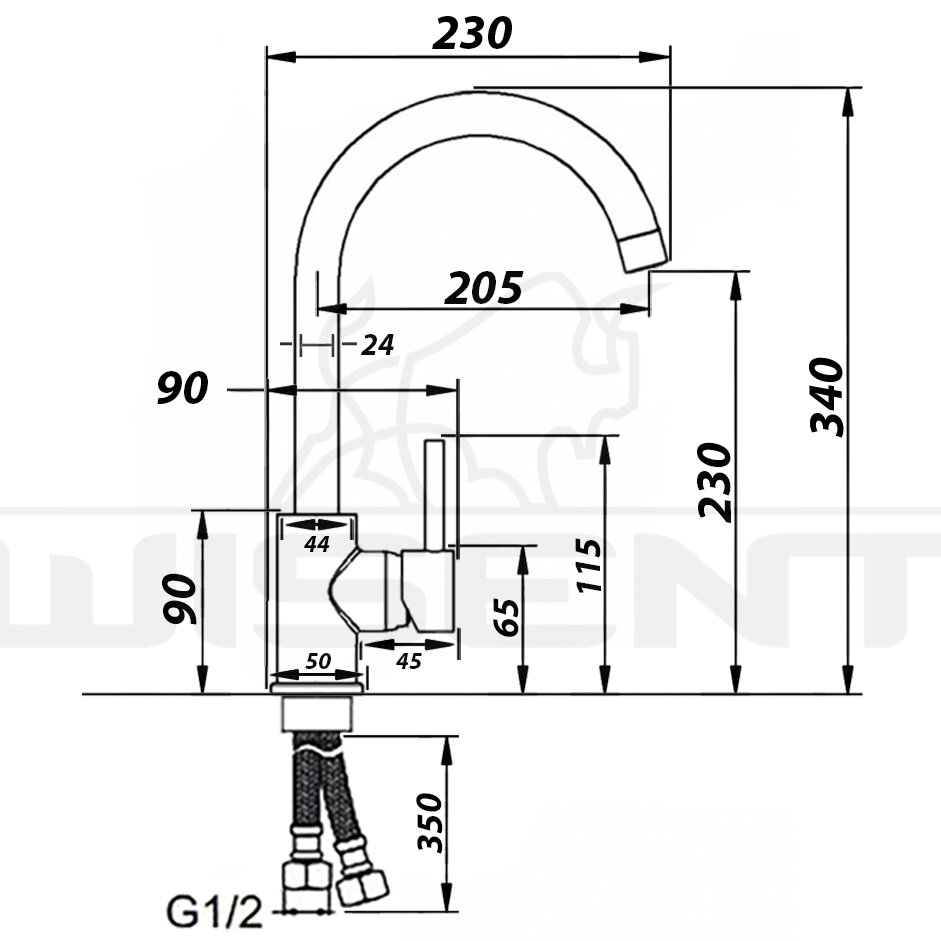 Смеситель кухонный WISENT 4998-3-U нержавеющая сталь с PVD покрытием