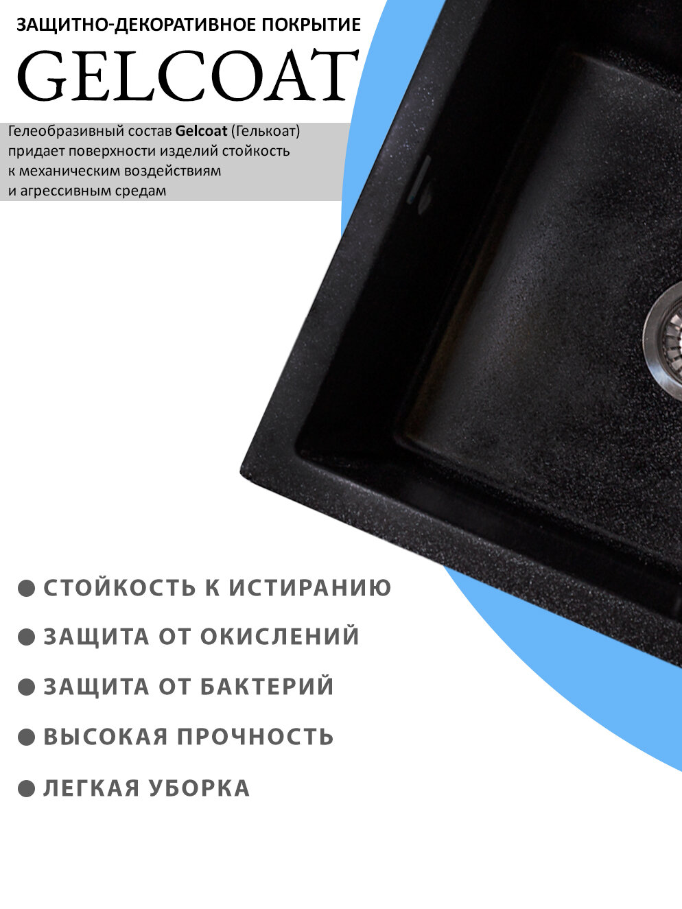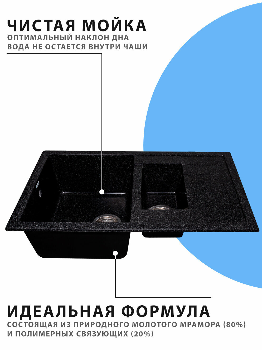 Мойка для кухни из искусственного камня двойная (76,6x49,2), черная интересное: