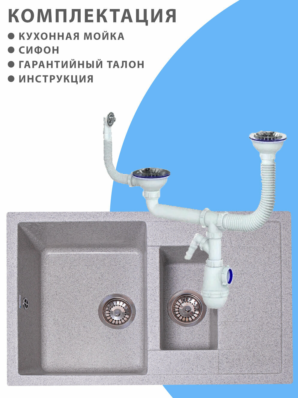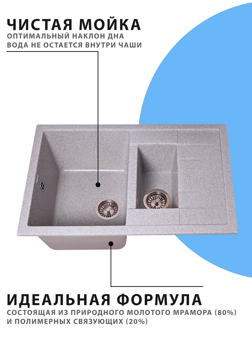 Мойка для кухни из искусственного камня двойная (76,6x49,2), серая интересное: