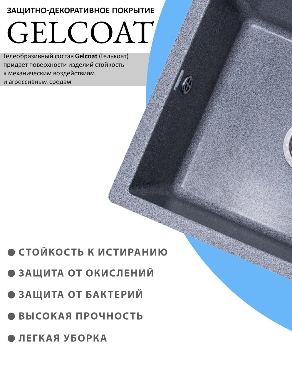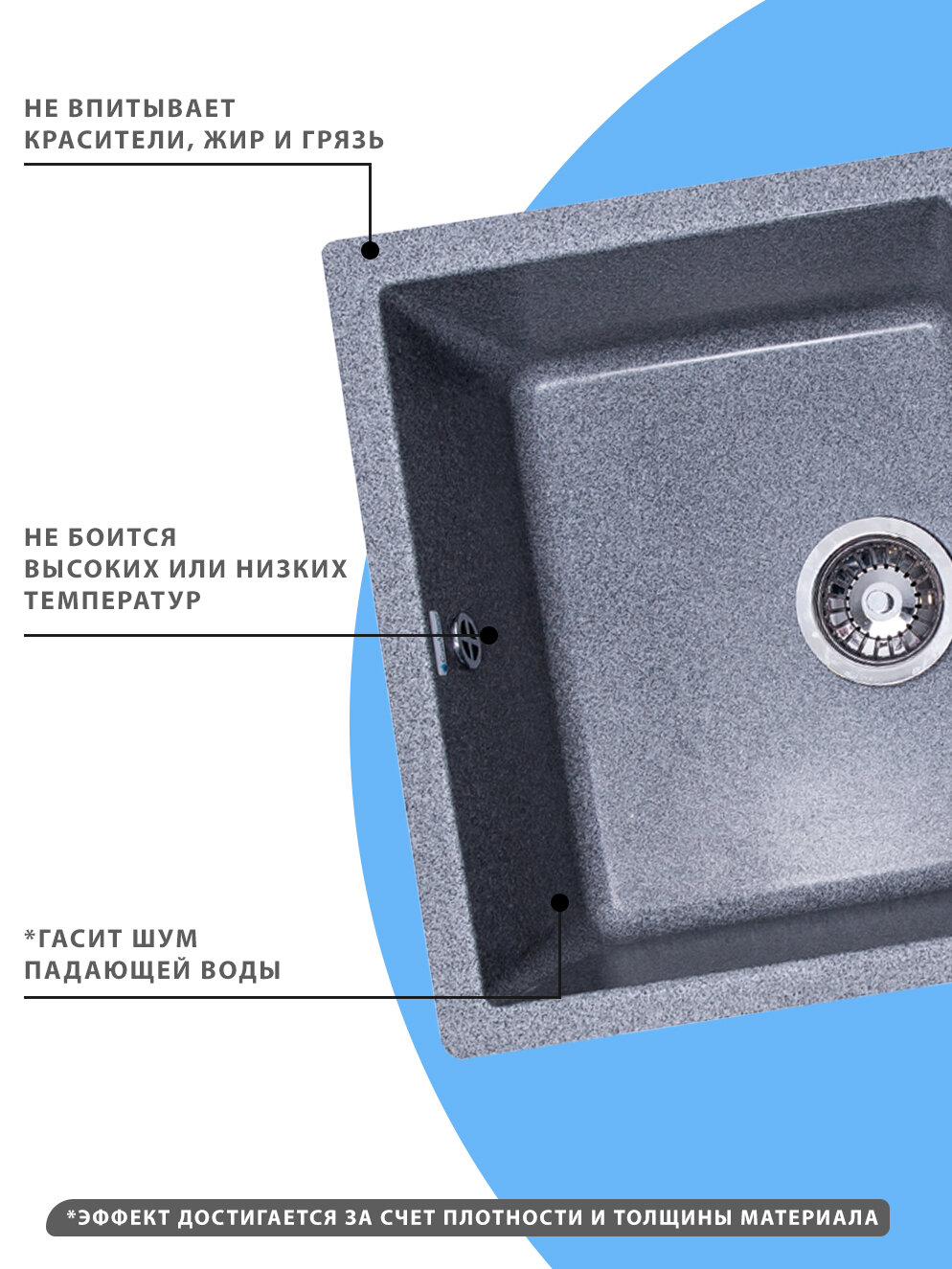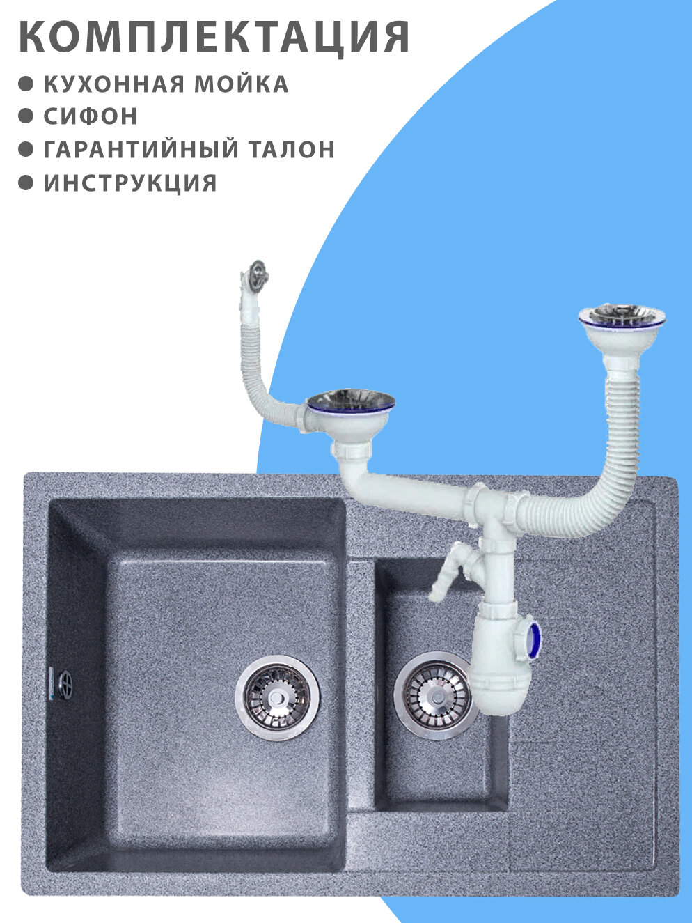 Мойка для кухни из искусственного камня двойная (76,6x49,2), темно-серая интересное: