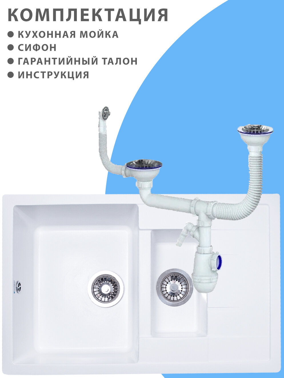 Мойка для кухни из искусственного камня двойная (76,6x49,2), белая интересное: