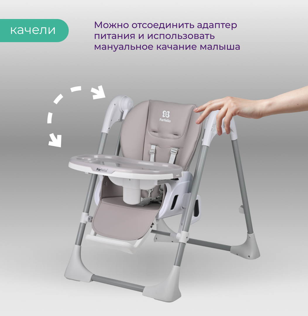 Стульчик для кормления ребенка электрокачели Farfello Multa, Серый интересное: