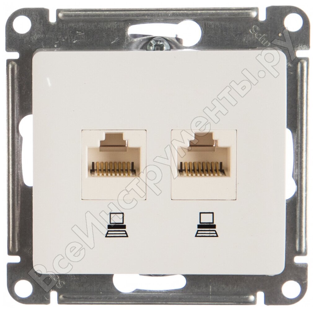 Купить Розетка информационная RJ45 двойная категория 5e Schneider Glossa (Белый)