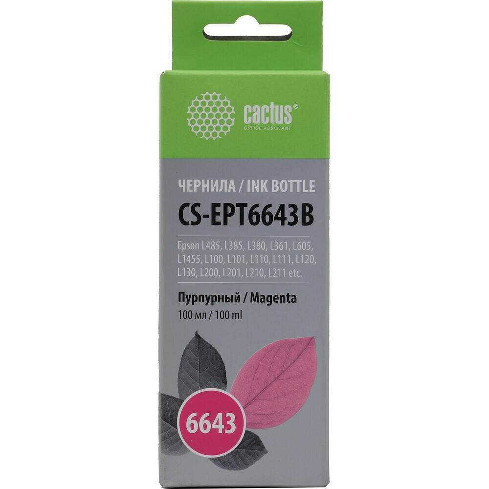 Чернила Cactus CS-EPT6643B пурпурный 100мл для Epson L100/L110/L120/L132/L200/L210/L222/L300/L312/L350/L355/L362/L366/L456/L550/L555/L566/L1300