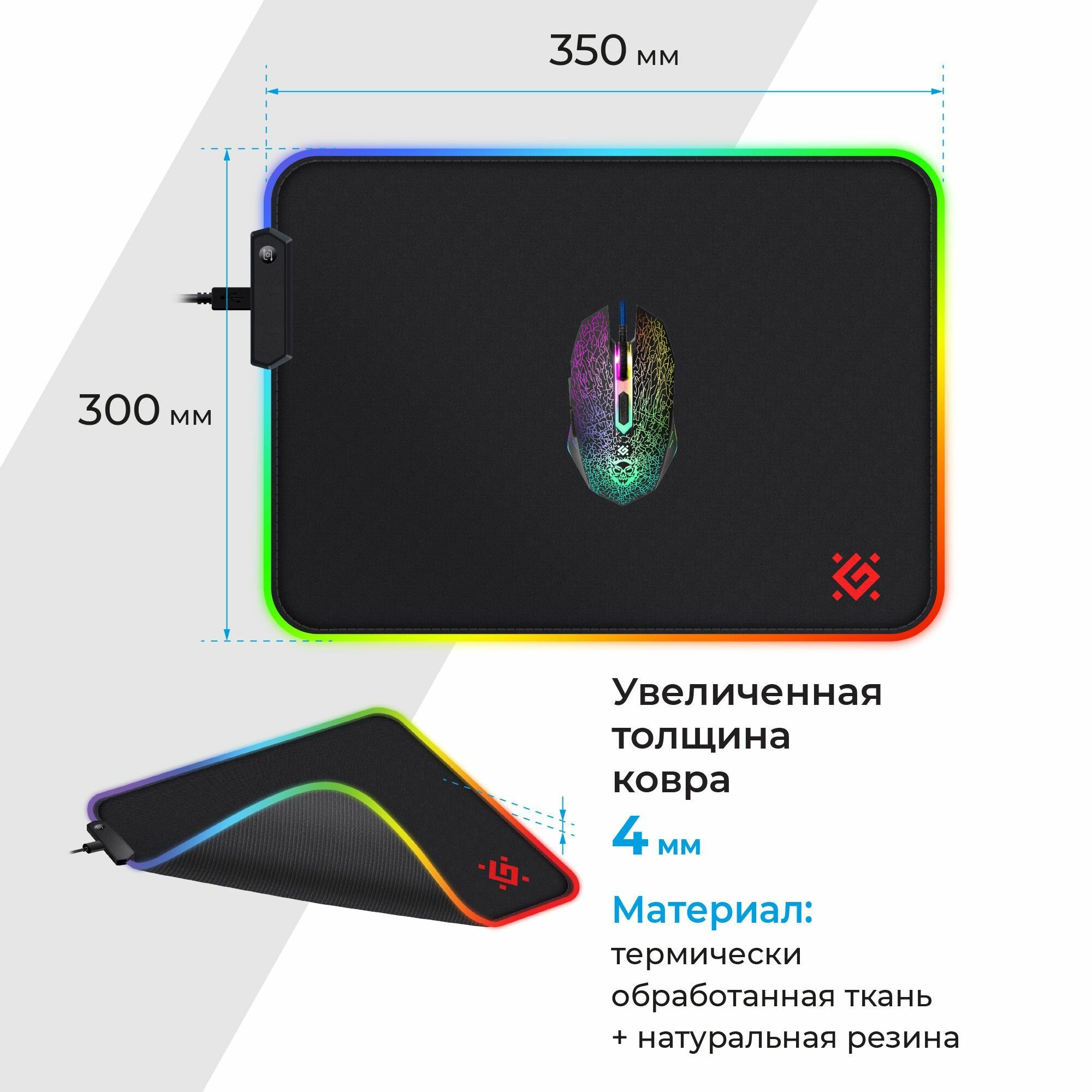 Коврик для мыши Defender XXL Light 450*400*4мм, подсветка, ткань+резина