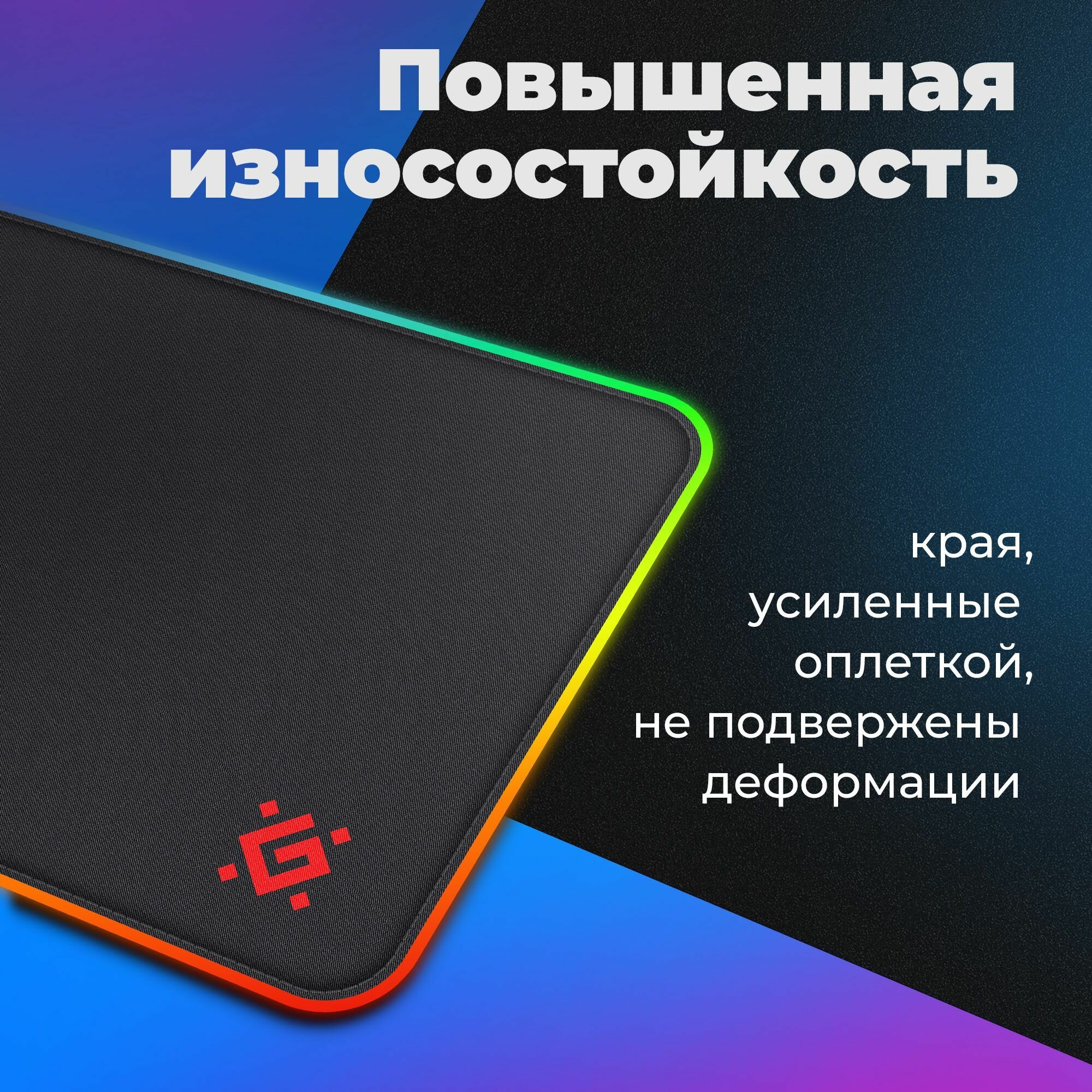Купить Игровой коврик для мышки с подсветкой RGB Light 350*300*4 мм, Defender Black L