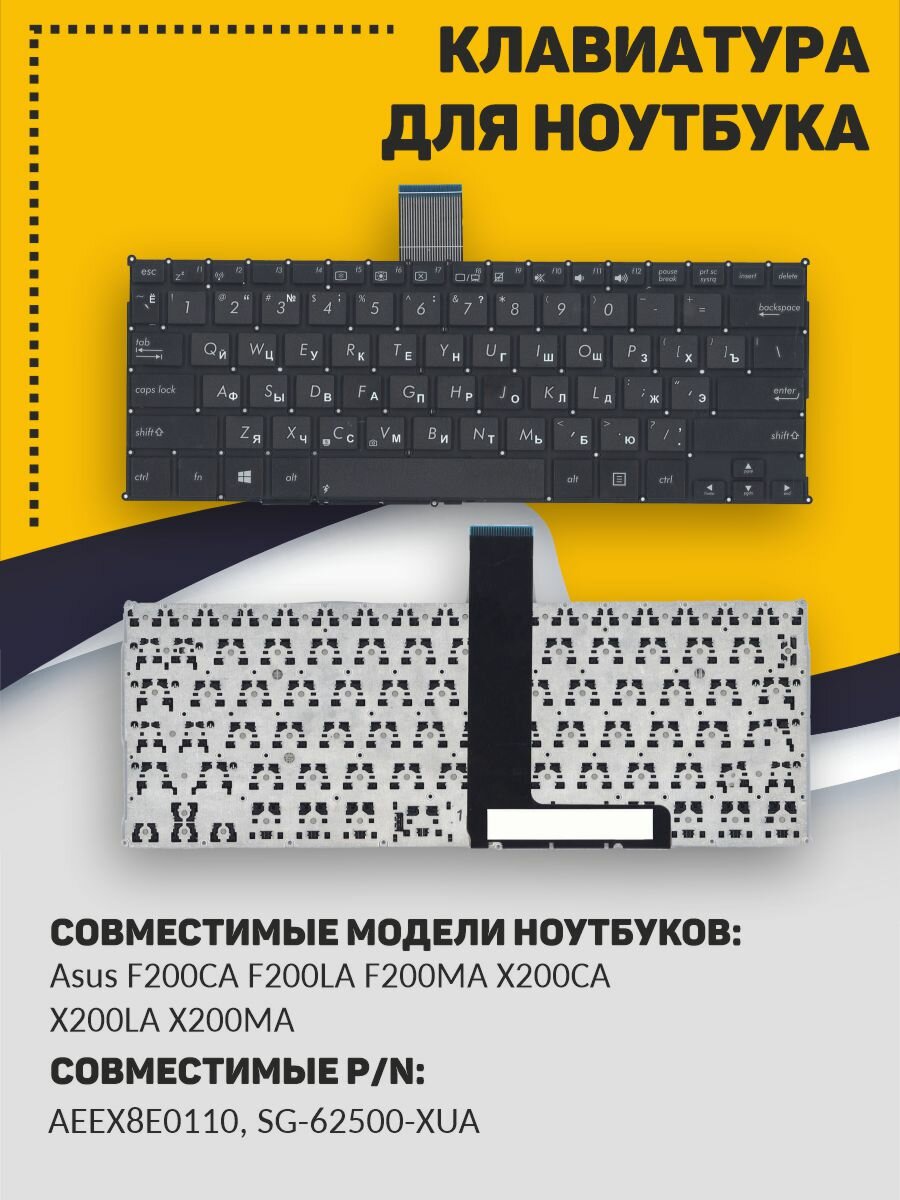 Клавиатура для ноутбука Asus F200CA F200LA F200MA черная, без рамки, плоский Enter интересное: