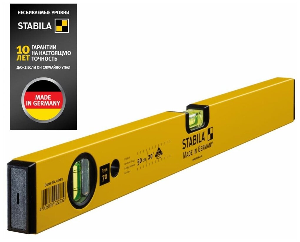 STABILA Уровень тип 70, 50см (1верт.,1гориз.,точн. 0,5мм/м) интересное: