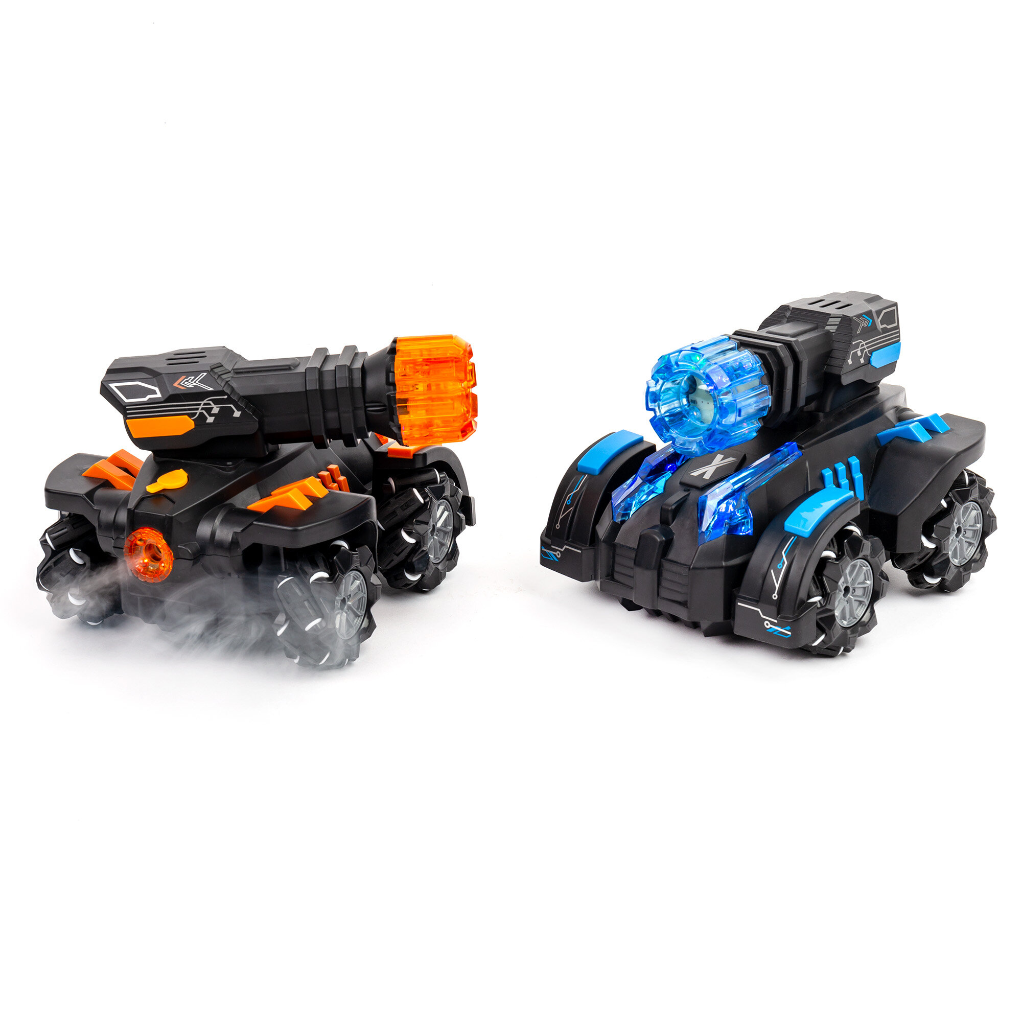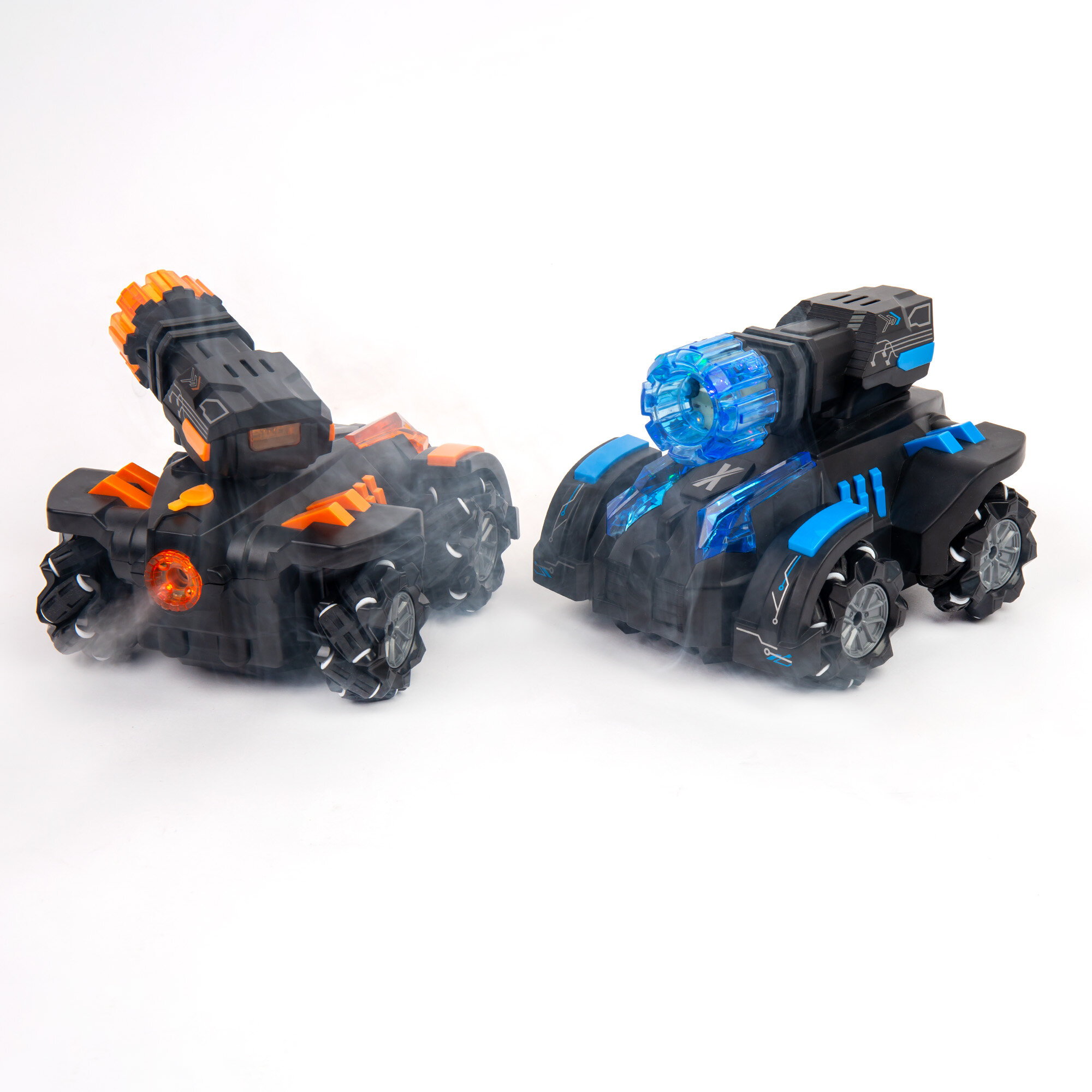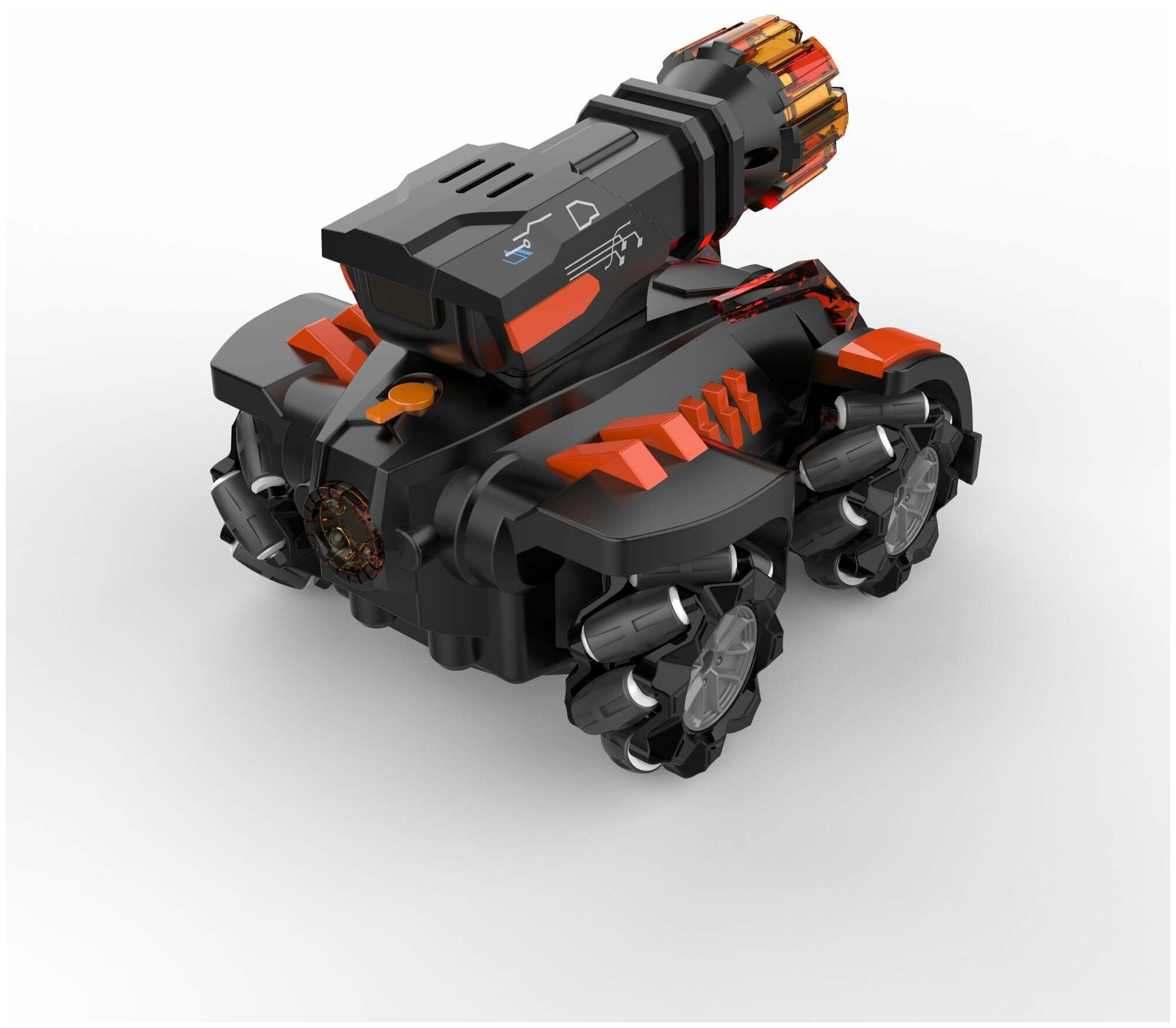 | Дополнительная информация | генератор пара, оснащены инфракрасной пушкой, всенаправленные-роликовые колёса Mecanum, у модели «три жизни», короткое нажатие на кнопку «огонь» – обычный выстрел, забирает одну «жизнь», длинное нажатие (2-3сек) на кнопку «огонь» - сильный выстрел, сразу поражает противника, при стрельбе имитируется звук выстрела и откат, вращение на 360 градусов, башки поворачиваются на 160° |