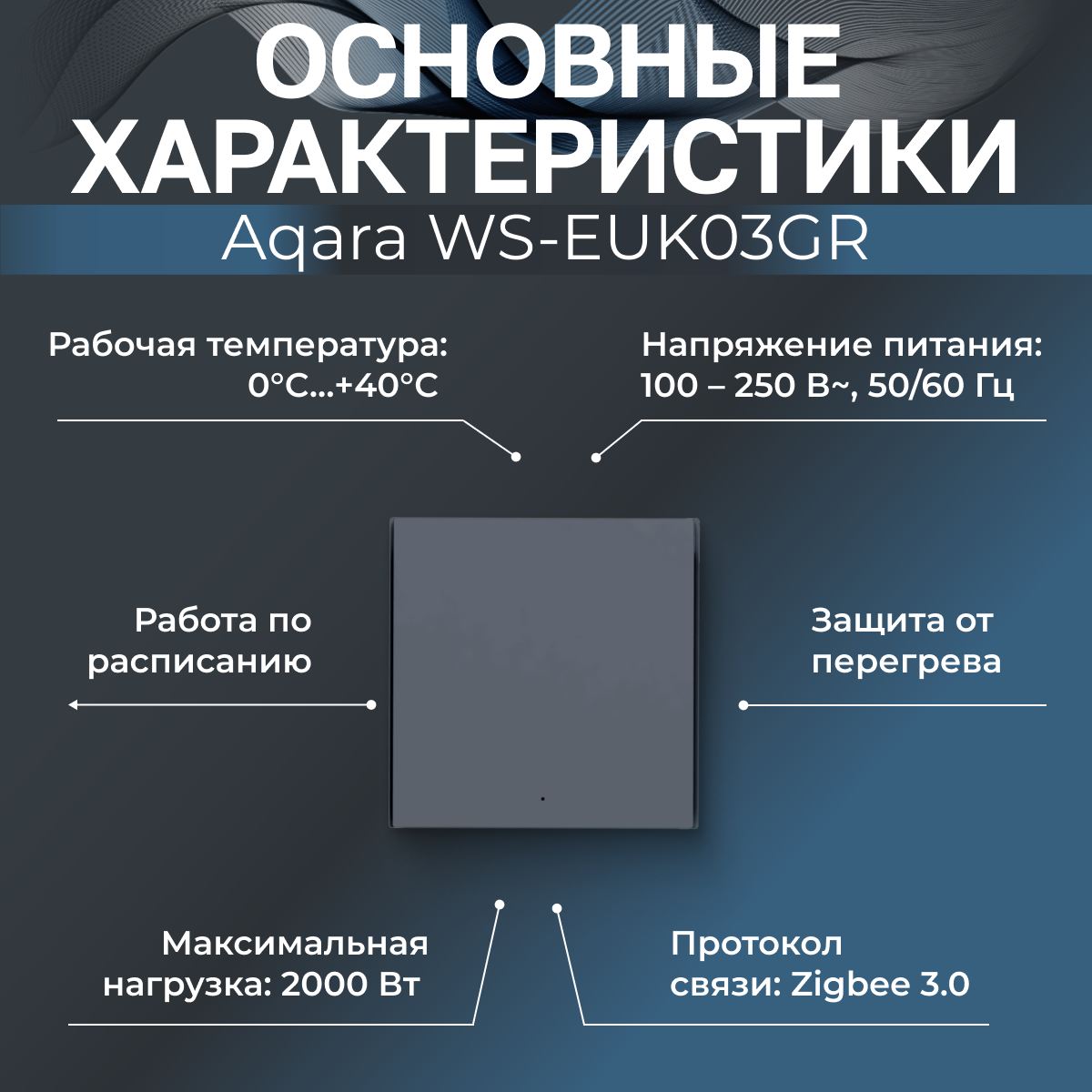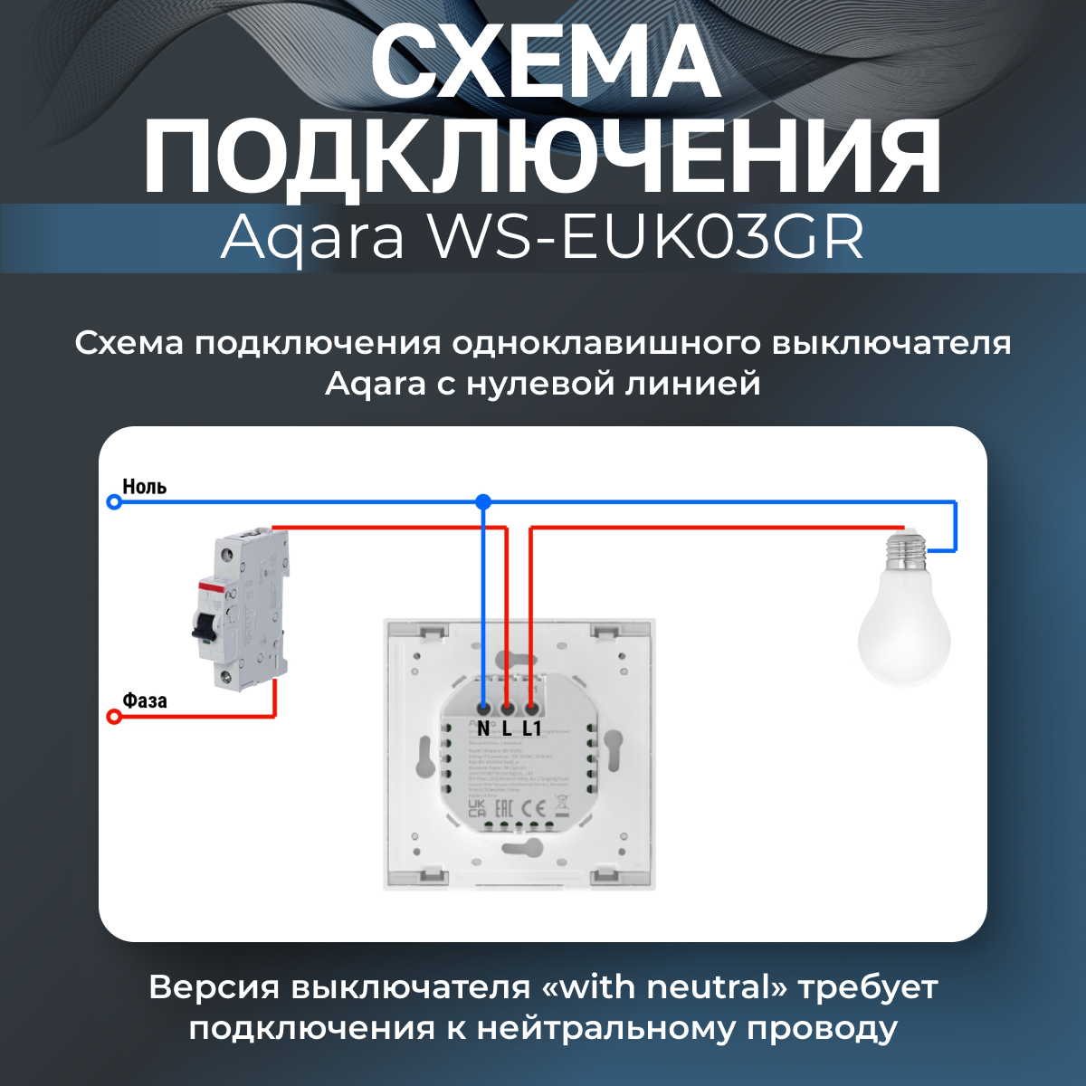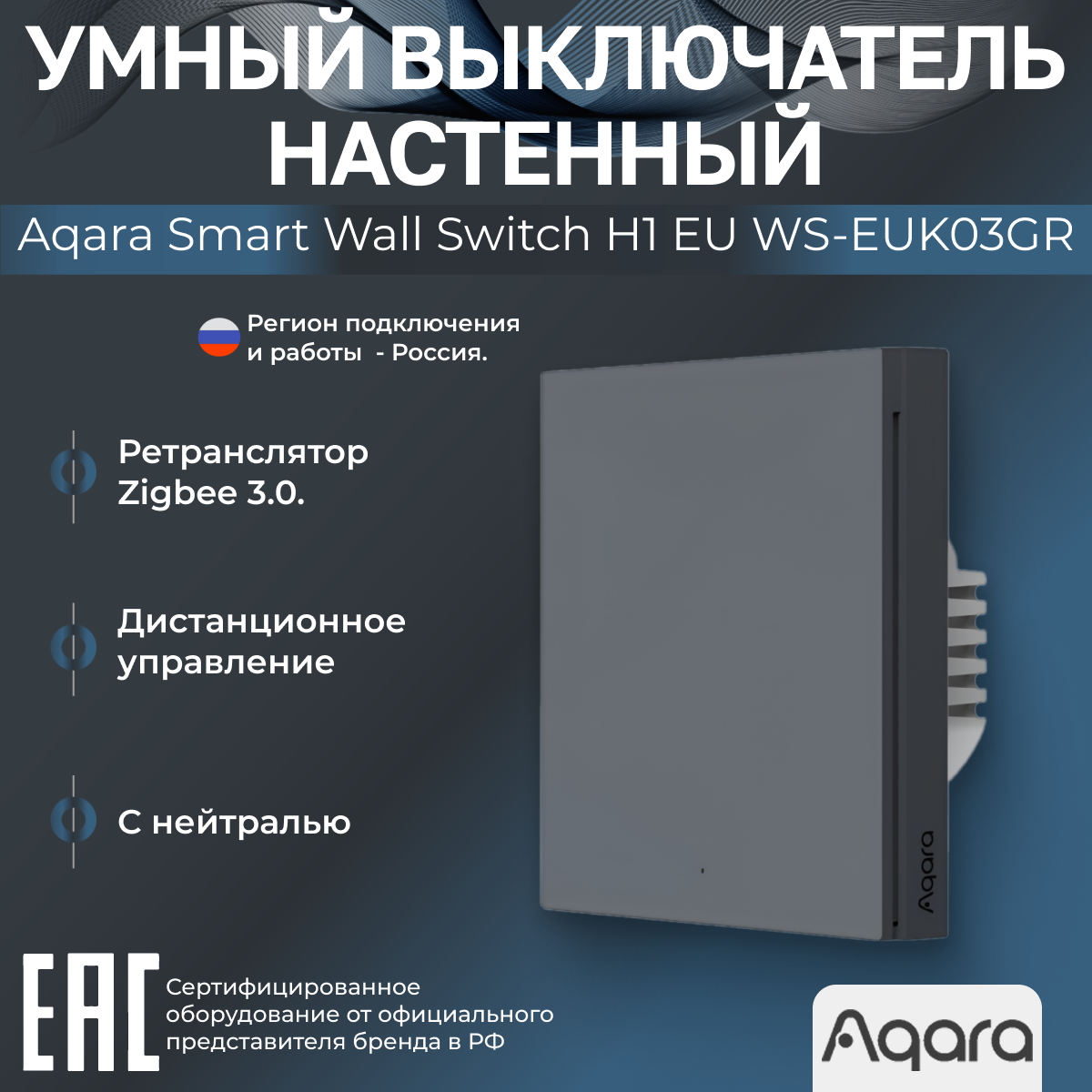 AQARA Умный настенный выключатель H1 EU(с нейтралью, 1 клавиша), модель WS-EUK03, цвет: графит