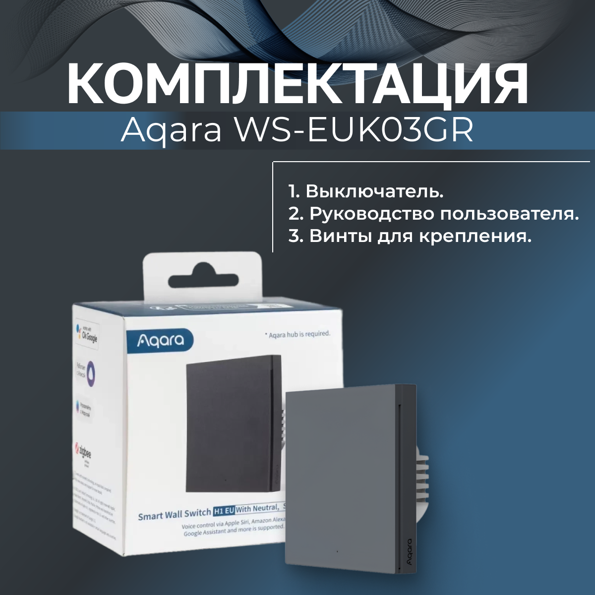 Умный выключатель одноклавишный с нейтралью Aqara H1 WS-EUK03gr, умный дом, серый