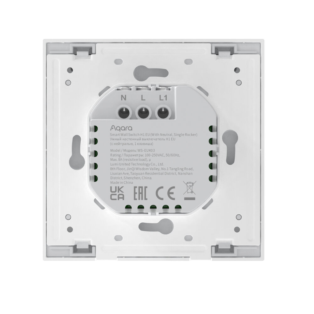 AQARA Умный настенный выключатель H1 EU(с нейтралью, 1 клавиша), модель WS-EUK03