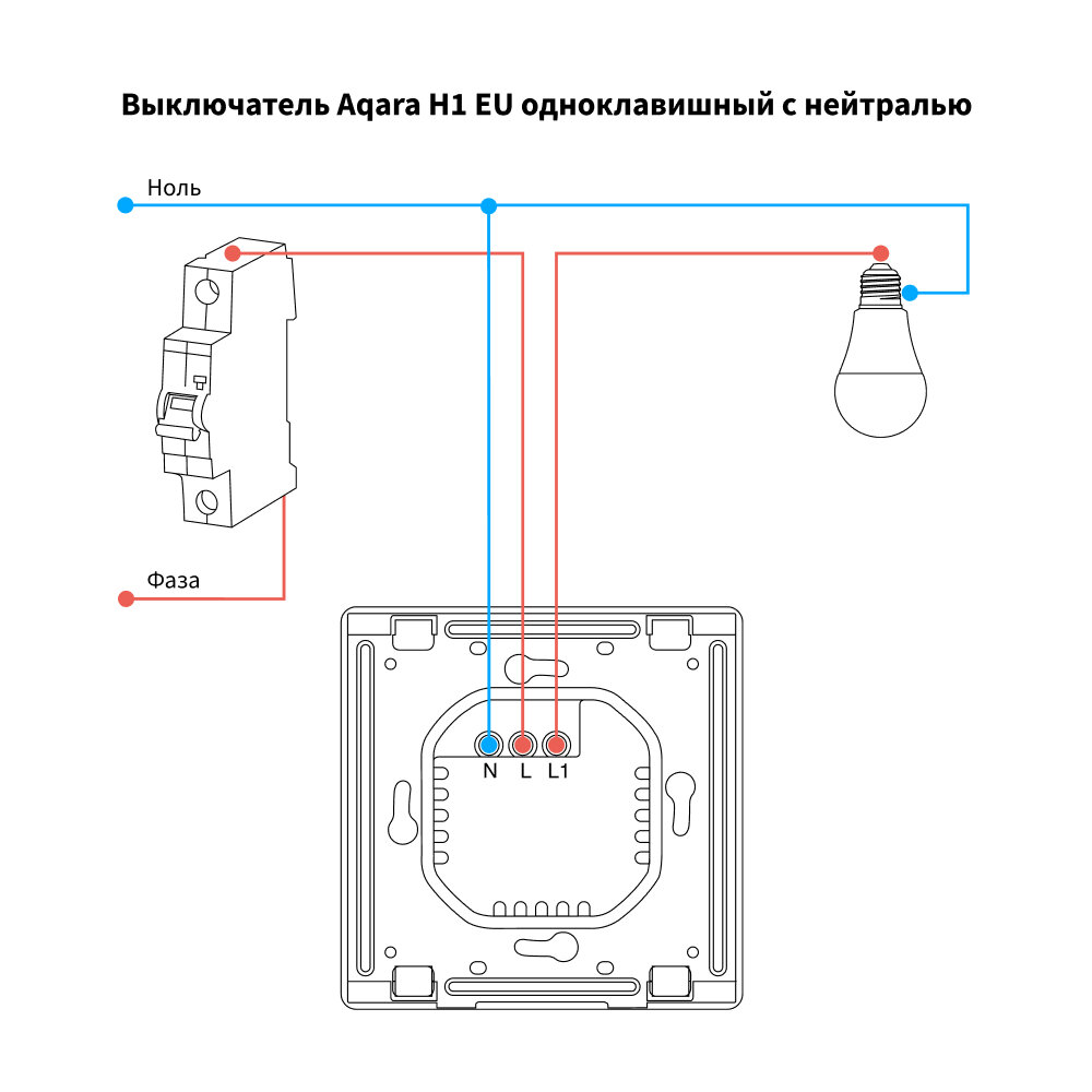 Умный выключатель Aqara Smart Wall Switch H1 EU ( Neutral, Single Rocker) (ws-euk03) WS-EUK03 .
