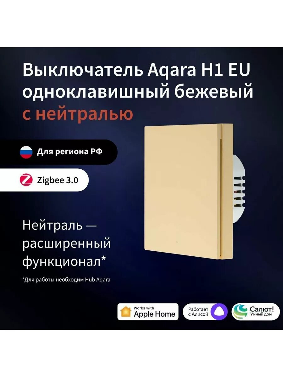Купить AQARA Бежевый Aqara Умный настенный выключатель H1 EU(с нейтралью, 1 клавиша) WS-EUK03be