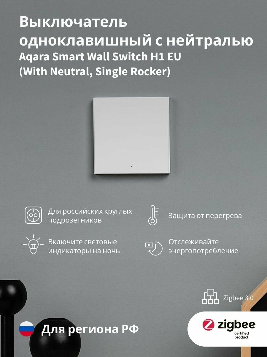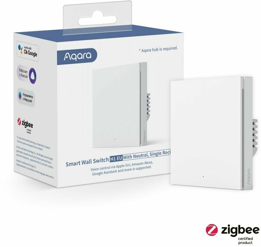 Умный выключатель Aqara Smart Wall Switch H1 EU ( Neutral, Single Rocker) (ws-euk03) WS-EUK03 .