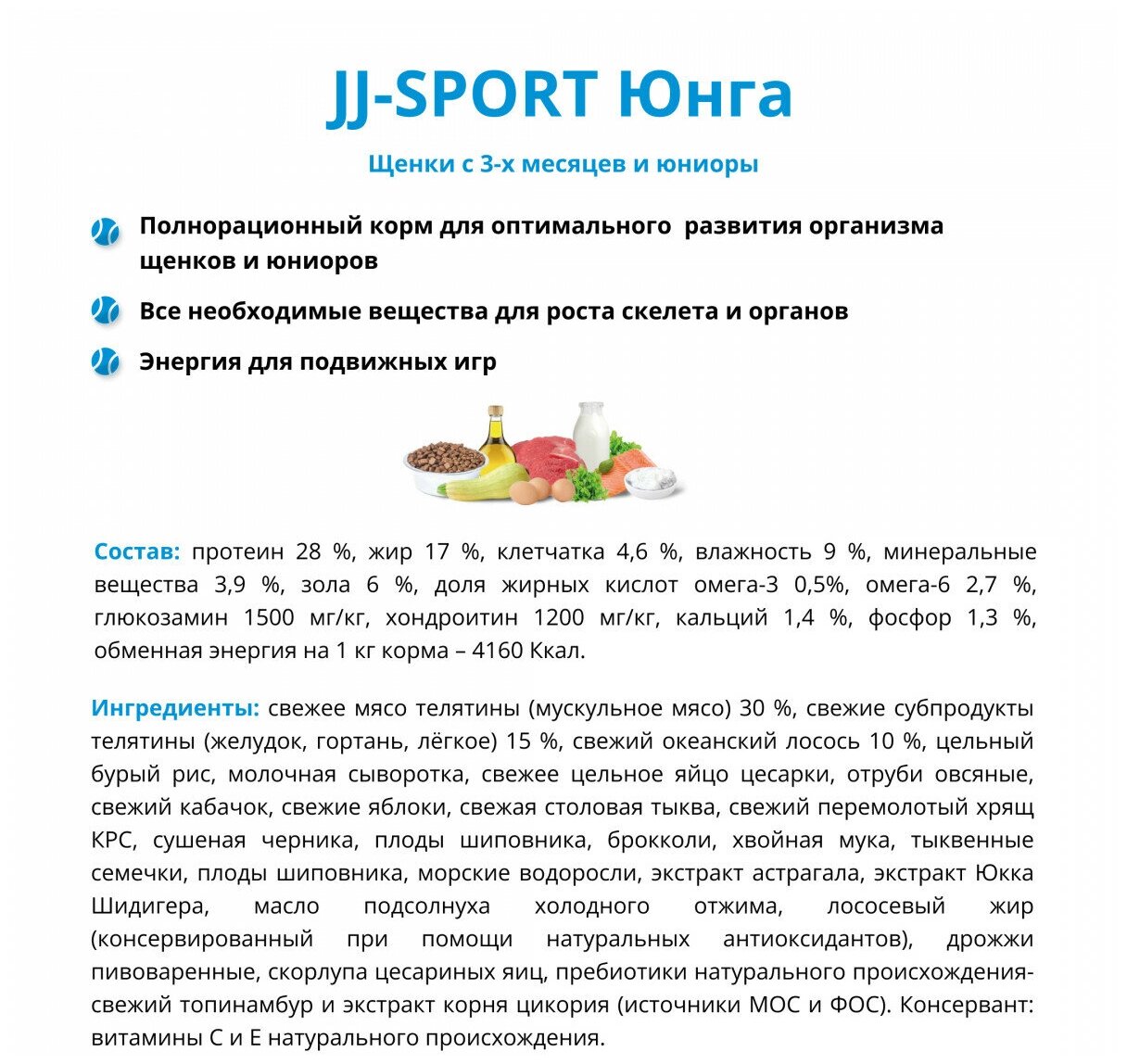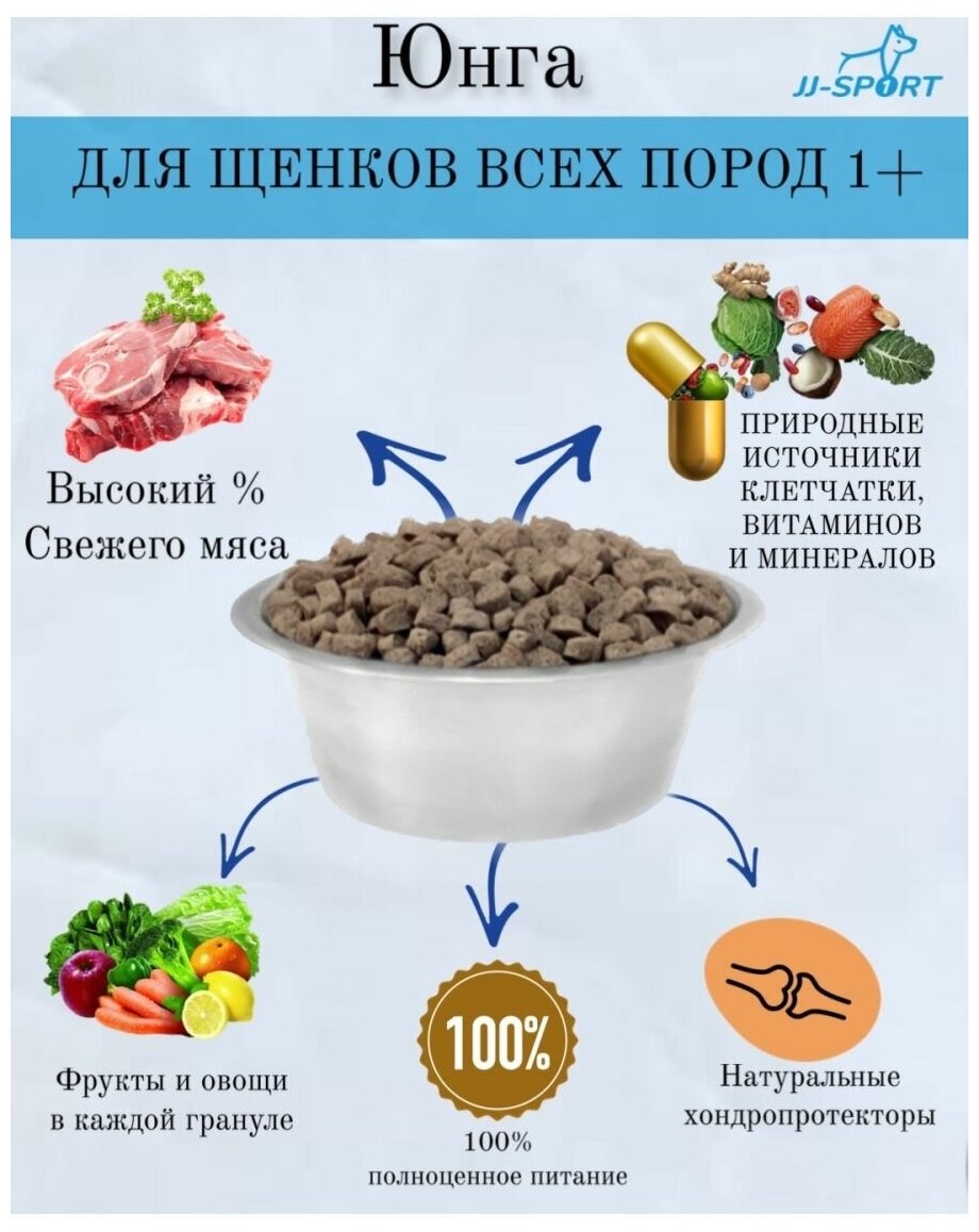 2,5 кг Сухой корм JJ-SPORT Юнга. Для щенков и Юниоров с 3 месяцев, с Телятиной. Мелкая гранула. Холистик