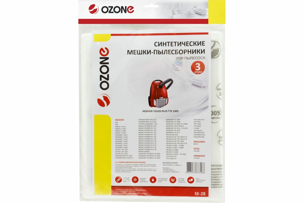 Купить OZONE Мешки пылесборники для пылесоса HOOVER, 3 шт., синтетические, многослойные, подходят: HANSEATIC, IRIT, OTTO SE-28