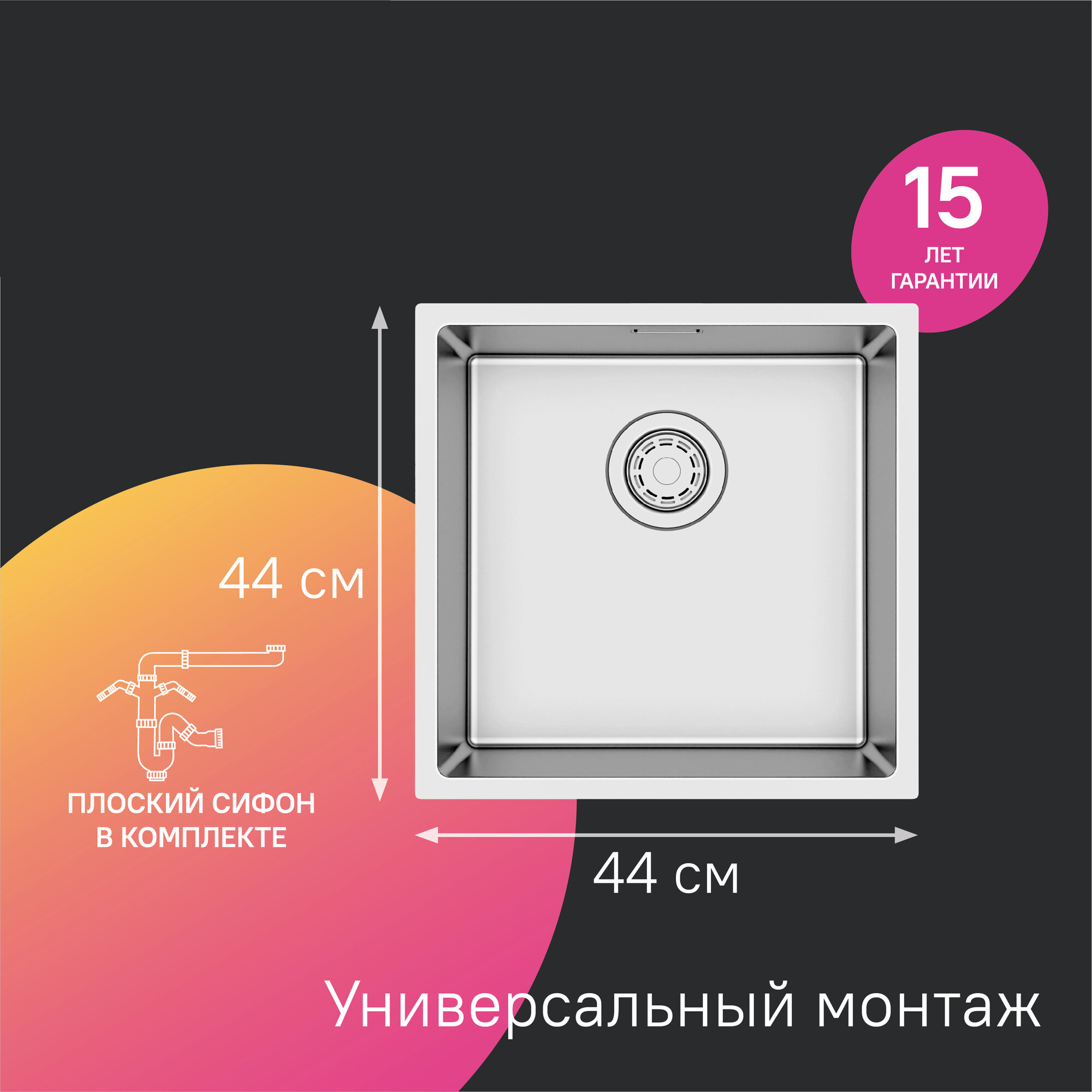 Мойка IDDIS Prime 440*440 из нержавеющей стали универсального монтажа сатин PRI44S0i77