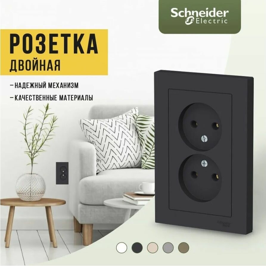 Розетка электрическая двухместная Systeme Electric Atlas Design без заземления в сборе 16А, Карбон ATN001020 - 4 шт.
