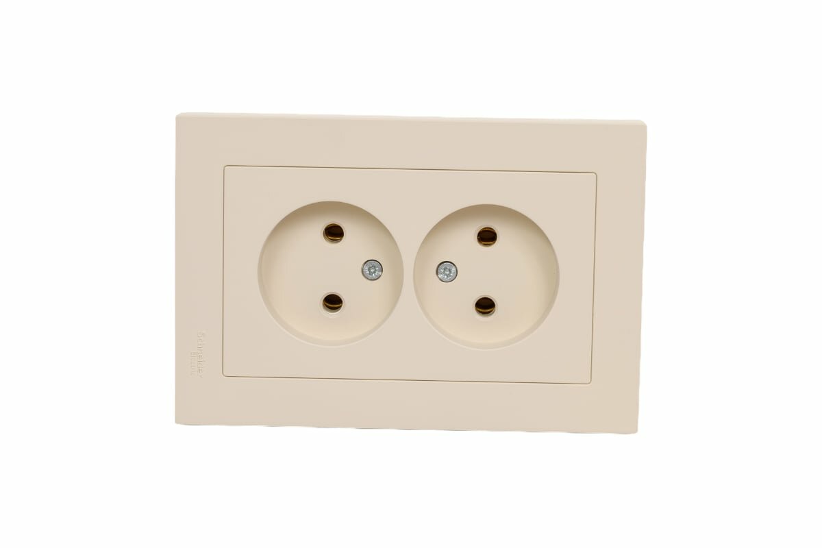 Розетка электрическая двухместная Systeme Electric Atlas Design без заземления в сборе 16А, Бежевый ATN000220 - 10 шт.