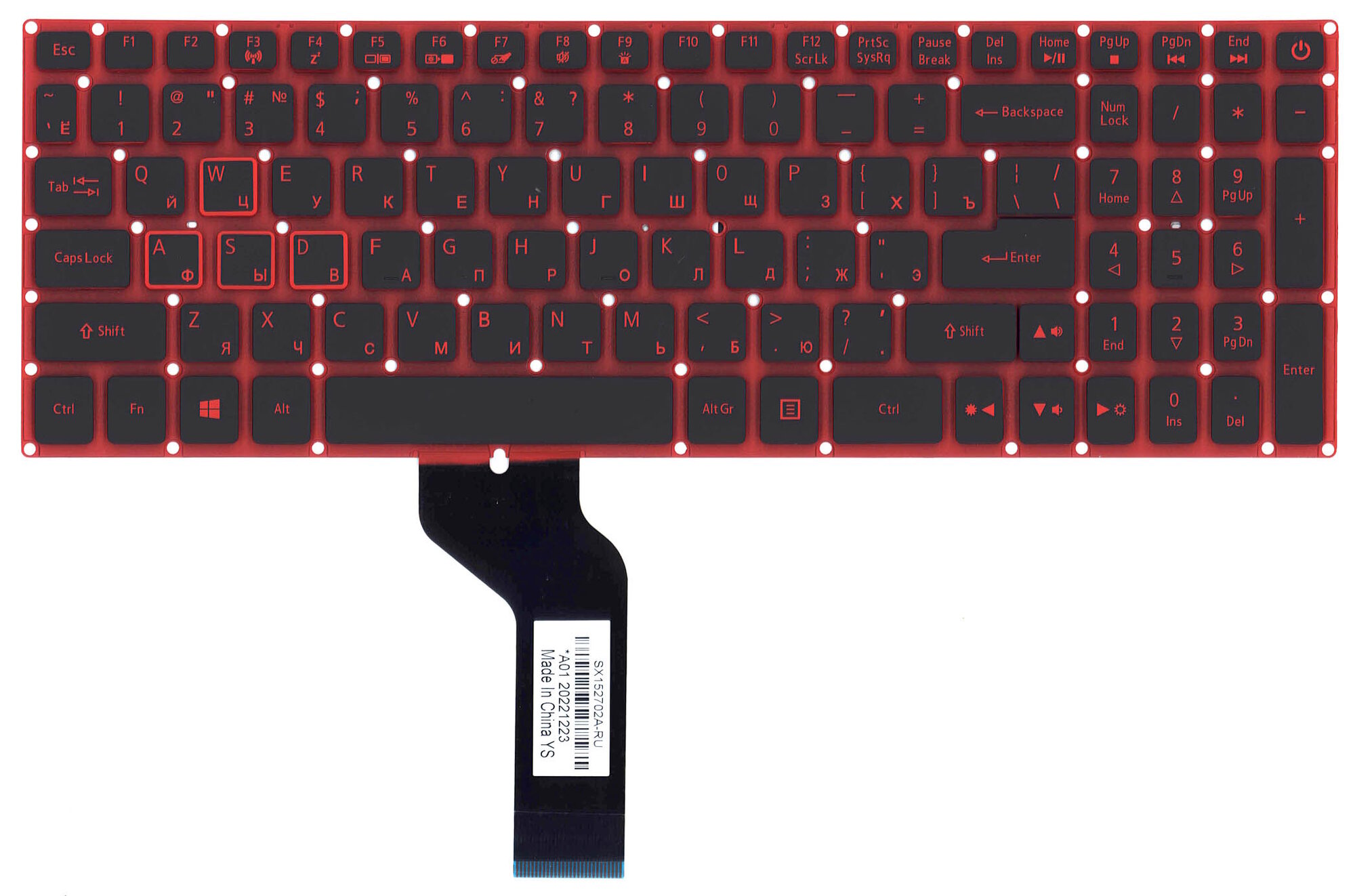Клавиатура для ноутбука Acer Nitro 5 AN515, AN515-51, AN515-52, AN515-53 черная, красные кнопки