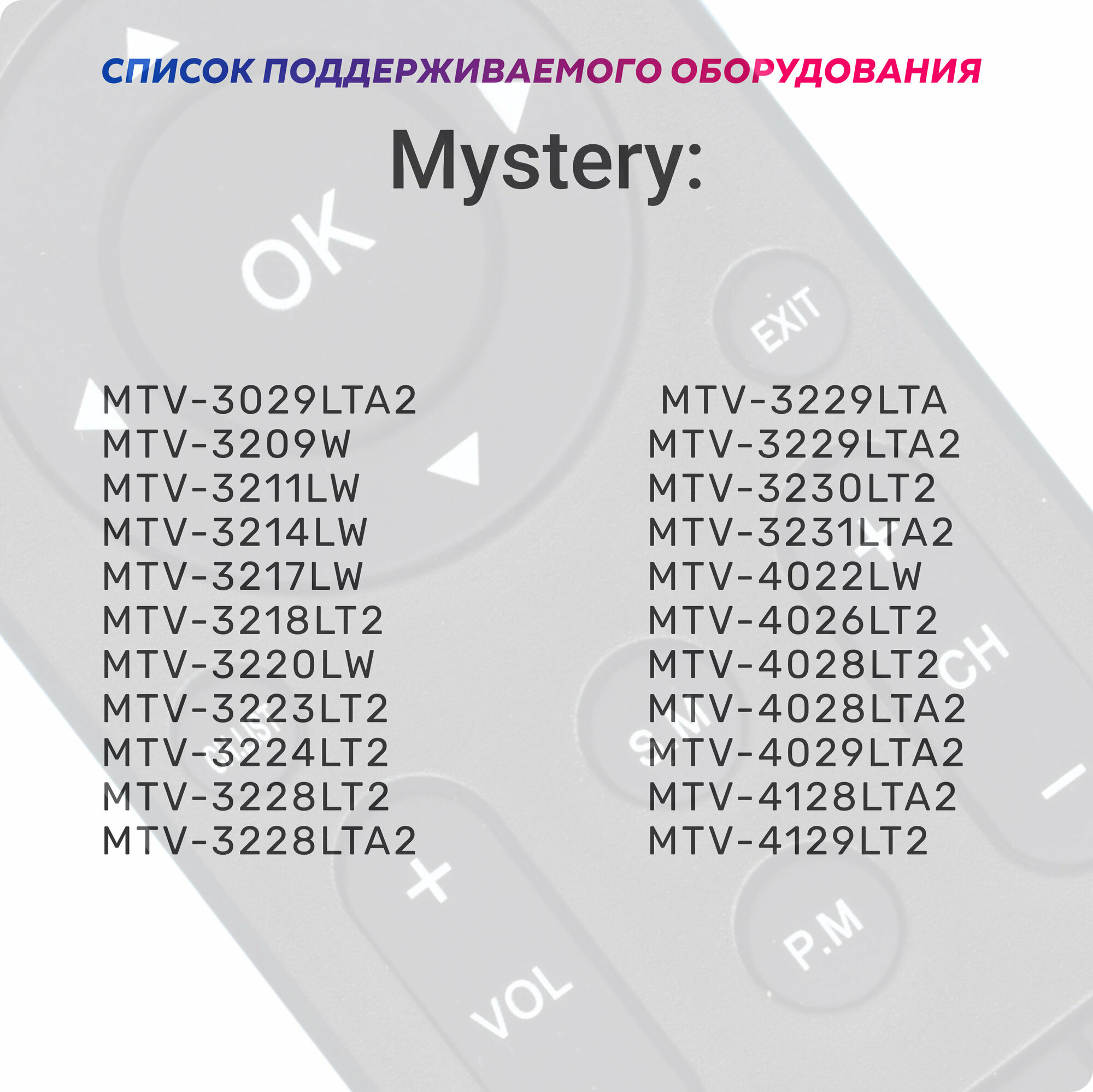 Пульт Huayu KT1045 MTV-2622LW чёрный для телевизора Mystery • Helix интересное:
